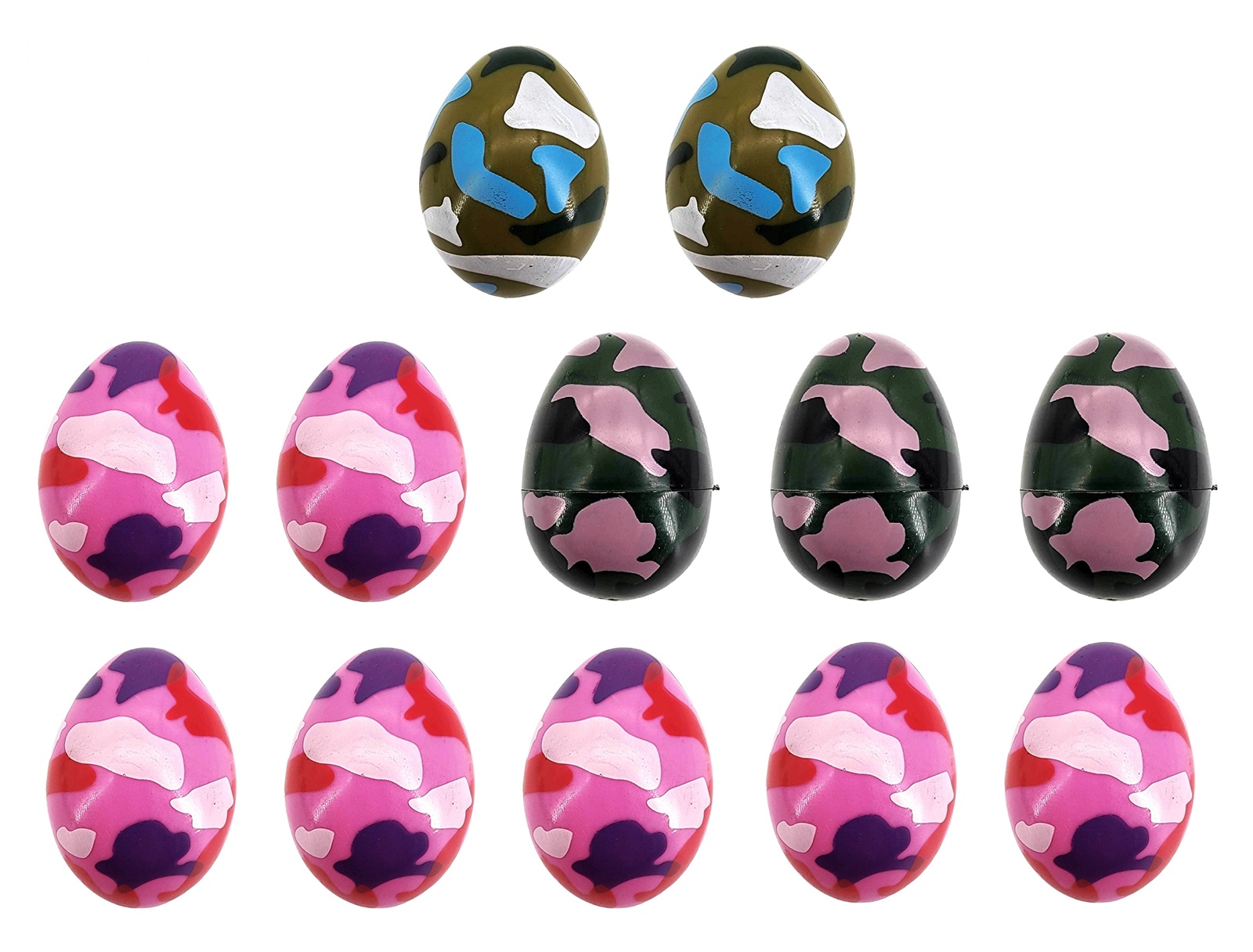 Camouflage Plastic Easter Eggs include a set of 12 camo Easter eggs. 12 eggs total, 2.25 inches each.