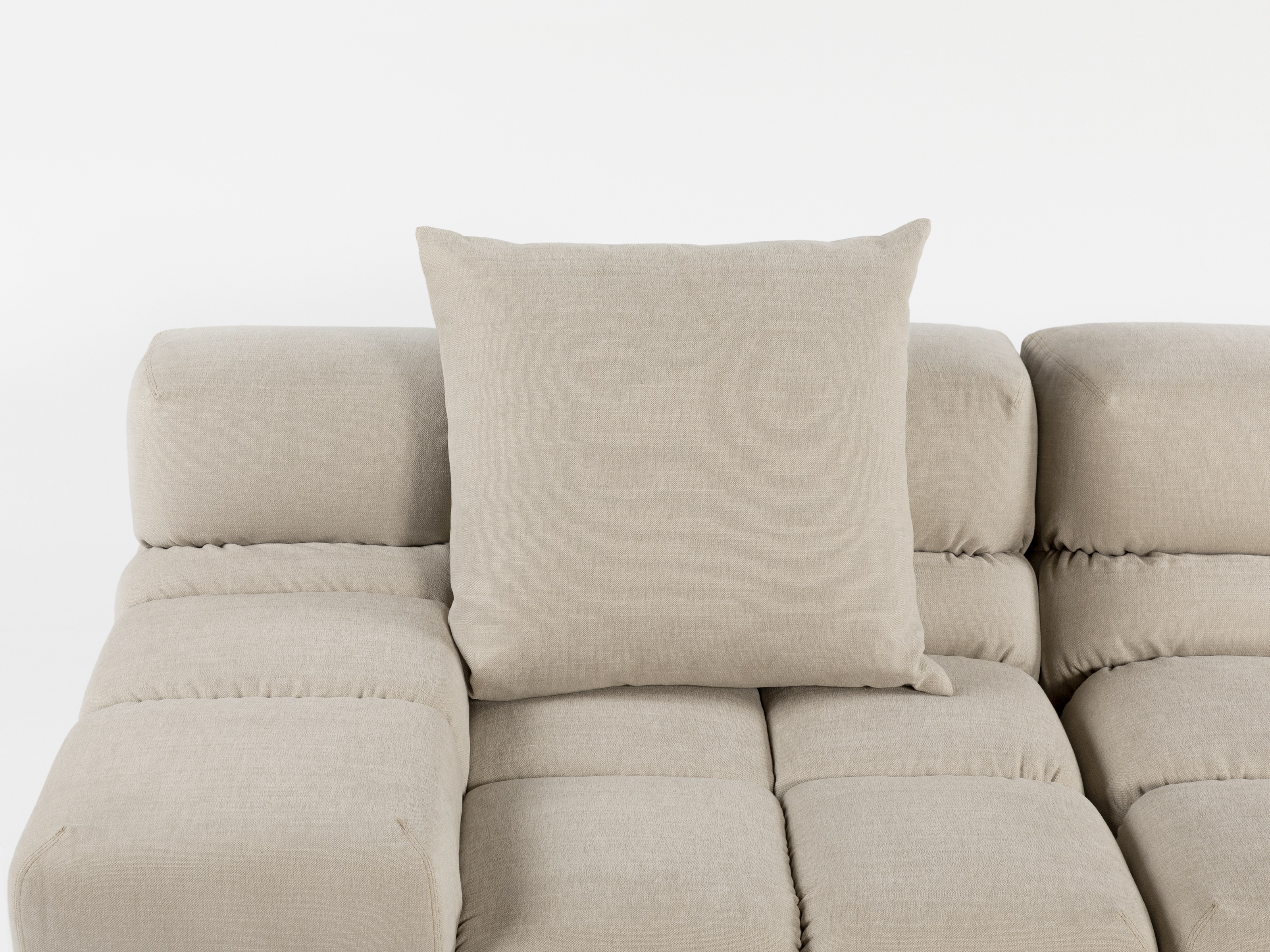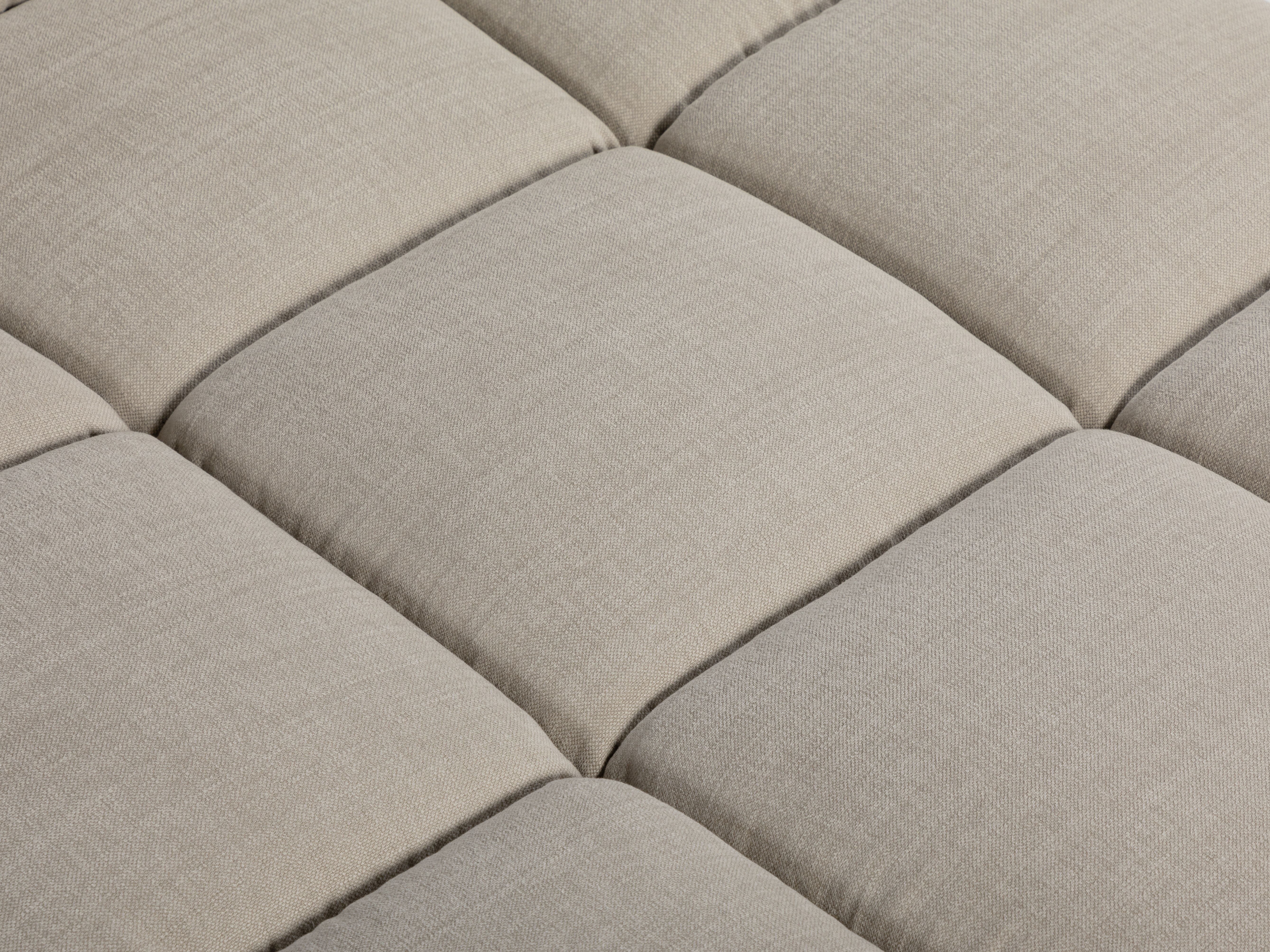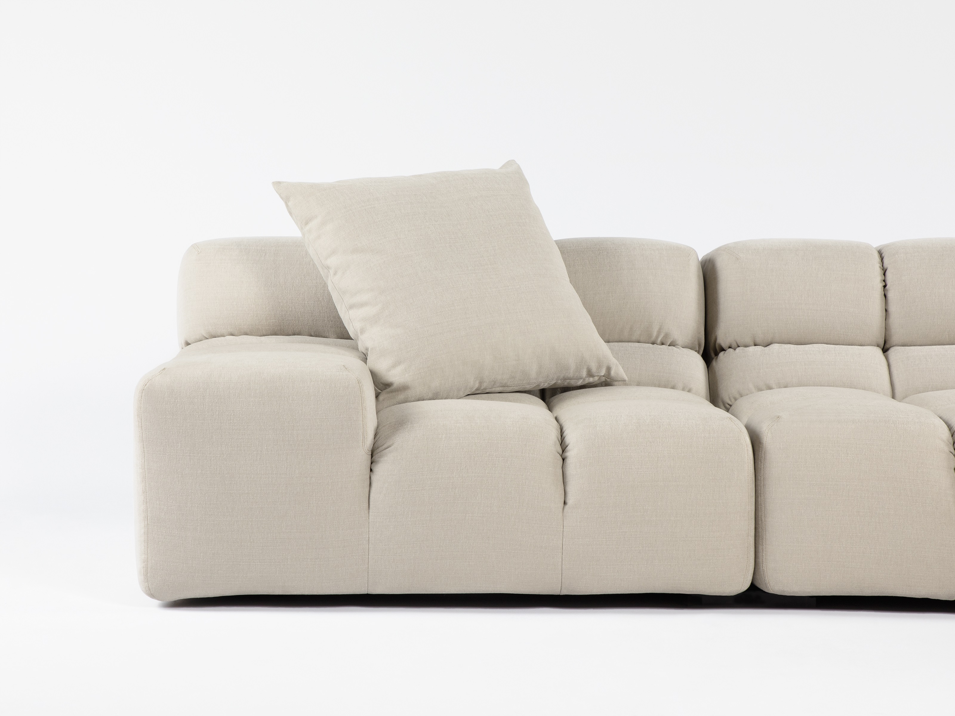 The Tufty-Time sofa series, one of B&B Italia’s most consolidated successes, finds effective answers to the themes of modularity, comfort, and removable covers. The Tufty-Time modular system starts with an ottoman as the basic piece, which is then accompanied by central, corner, and terminal elements with a low or high armrest. The elements are used to invent traditional sofas, sofas with chaise longue, corner sofa,s and island elements that provide a 360° seating solution. Cozy in its more accentuated depth, Tufty-Time becomes a meeting place, a welcoming refuge where people can just relax. With its fabric or leather upholstery, Tufty-Time offers a more contemporary take on the traditional Chesterfield and capitonné sofas, with a freer and more informal lifestyle.