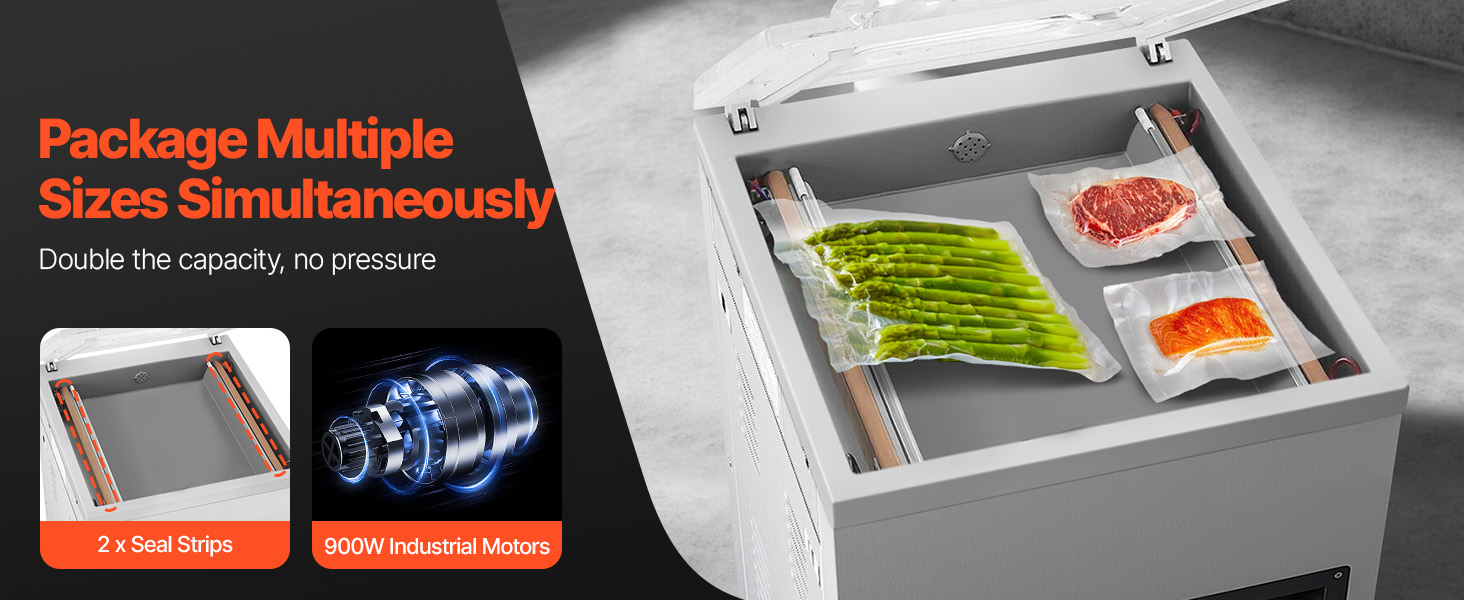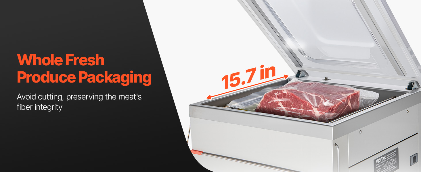 A: It can easily handle whole fish, large hams, and big cuts of steak—ideal for stocking up at home or packaging ingredients in a shop.