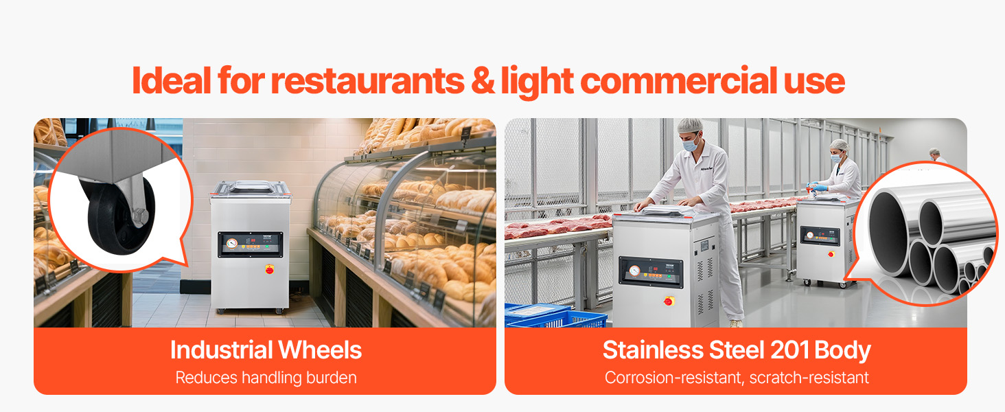 A: With a stainless steel exterior and industrial motor, it can handle sealing 100 bags daily without issue. It’s ideal for cafés and restaurants too.