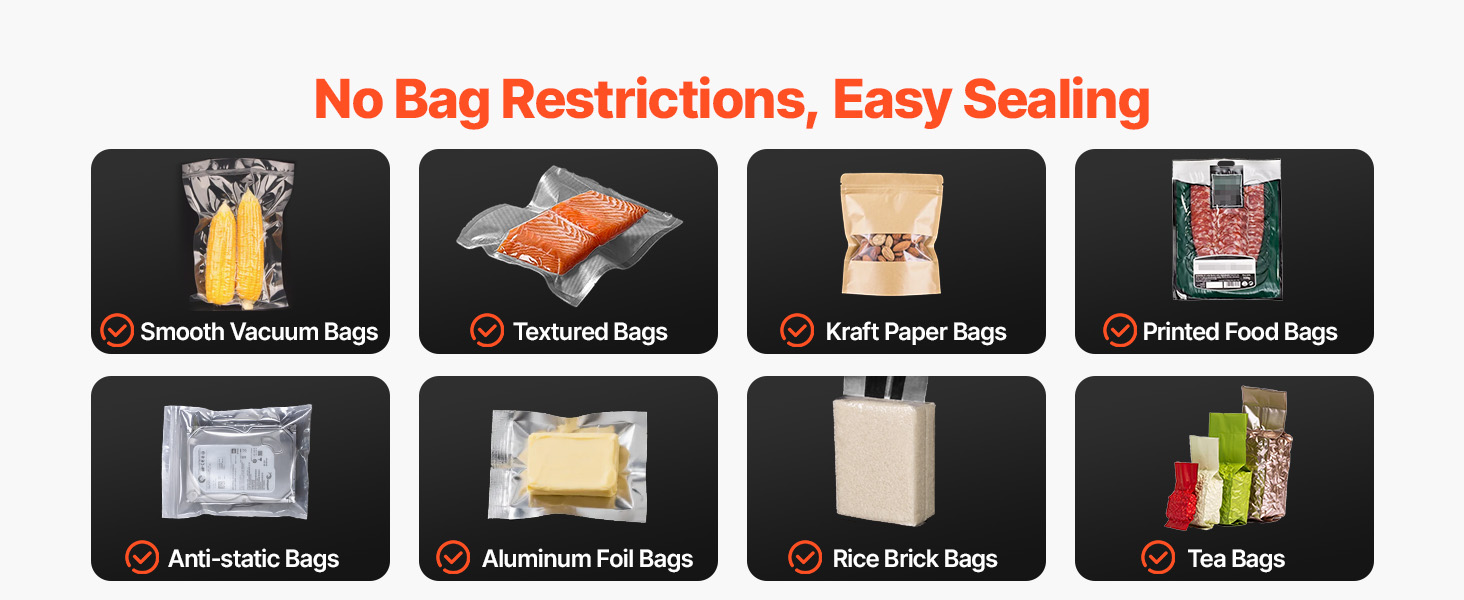 A: It works with most standard vacuum bags on the market, supporting both plastic and aluminum foil materials.