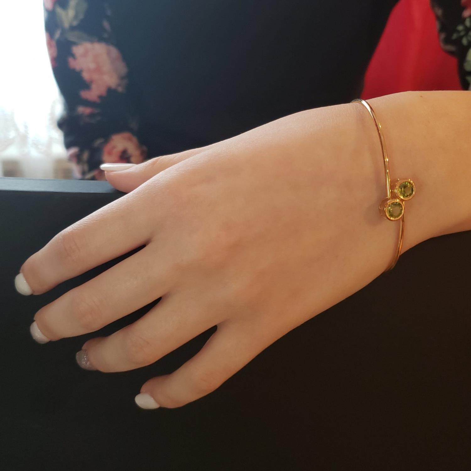 This is a beautiful round shape bezel bangle bracelet set in Solid 14Kt Gold. We have this bangle design available in all gemstones that you can see in our store. You can choose if you want it in 14Kt White Gold, 14Kt Yellow Gold or 14Kt Rose Gold. Solid 14Kt Gold Size: 7 inch Bracelet 6mm Peridot, 2 Carats Comes in jewelry box Matching Earrings, Pendants & Rings Available