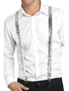 A pair of standard sized silver sequin clip on braces