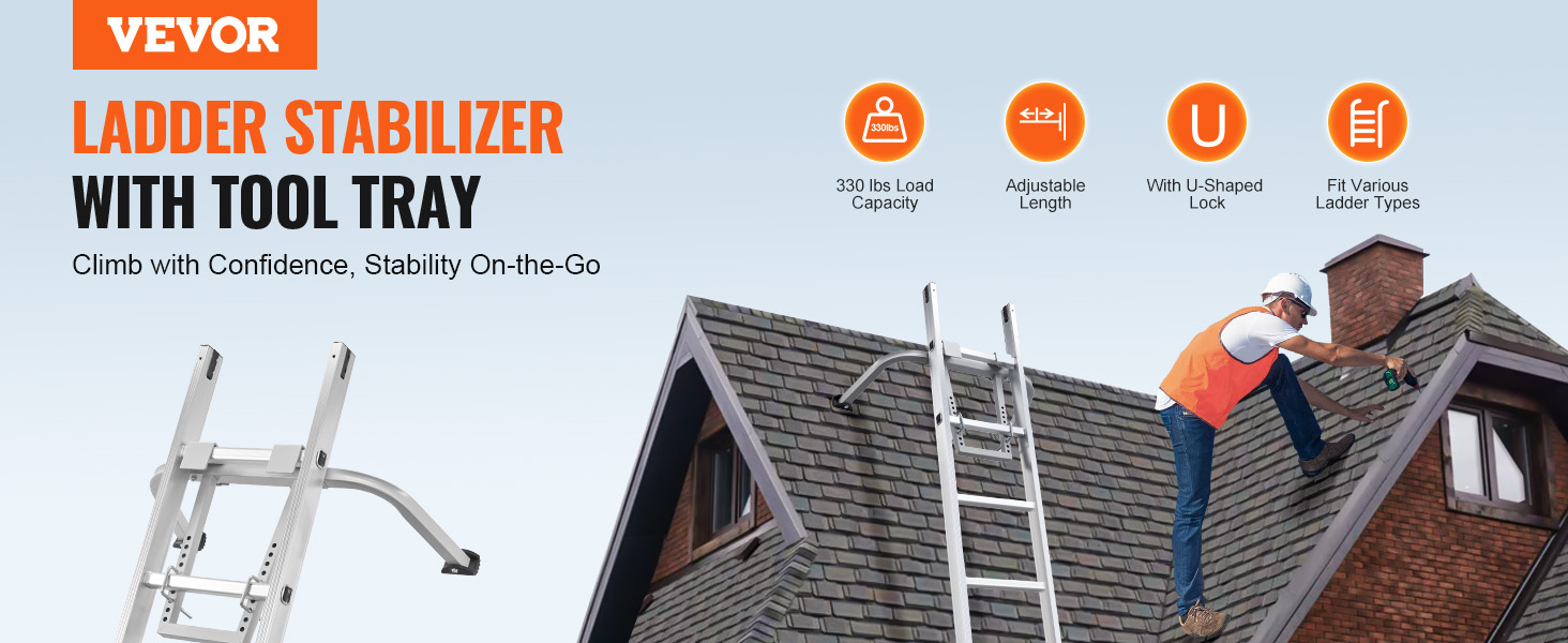 Our ladder stabilizer is made from high-strength carbon steel, ensuring stability and safety! With a weight capacity of 330 lbs, it can support the weight of most adults. Compatible with various ladder shapes and suitable for multiple scenarios, it makes your high-altitude work easier!