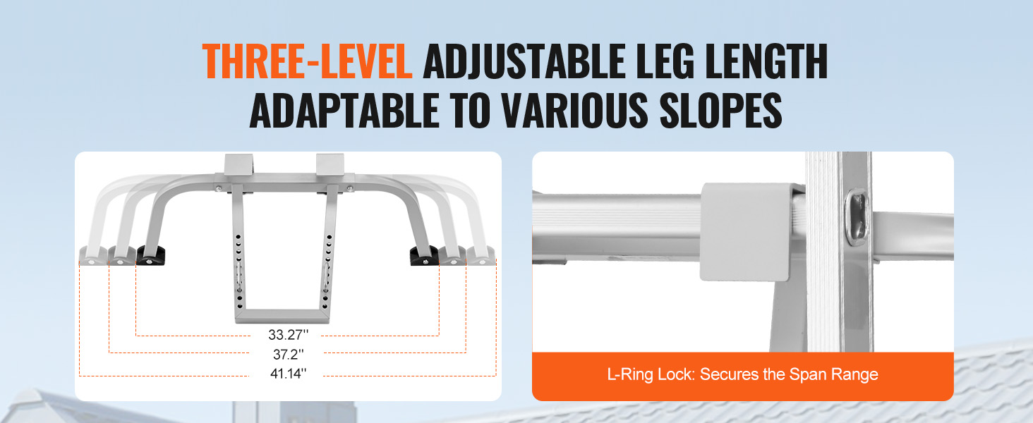 Adjustable in three positions, the leg lengths accommodate various slopes for solid support. Equipped with reliable locking clips, it ensures safety and flexibility at any height or angle.