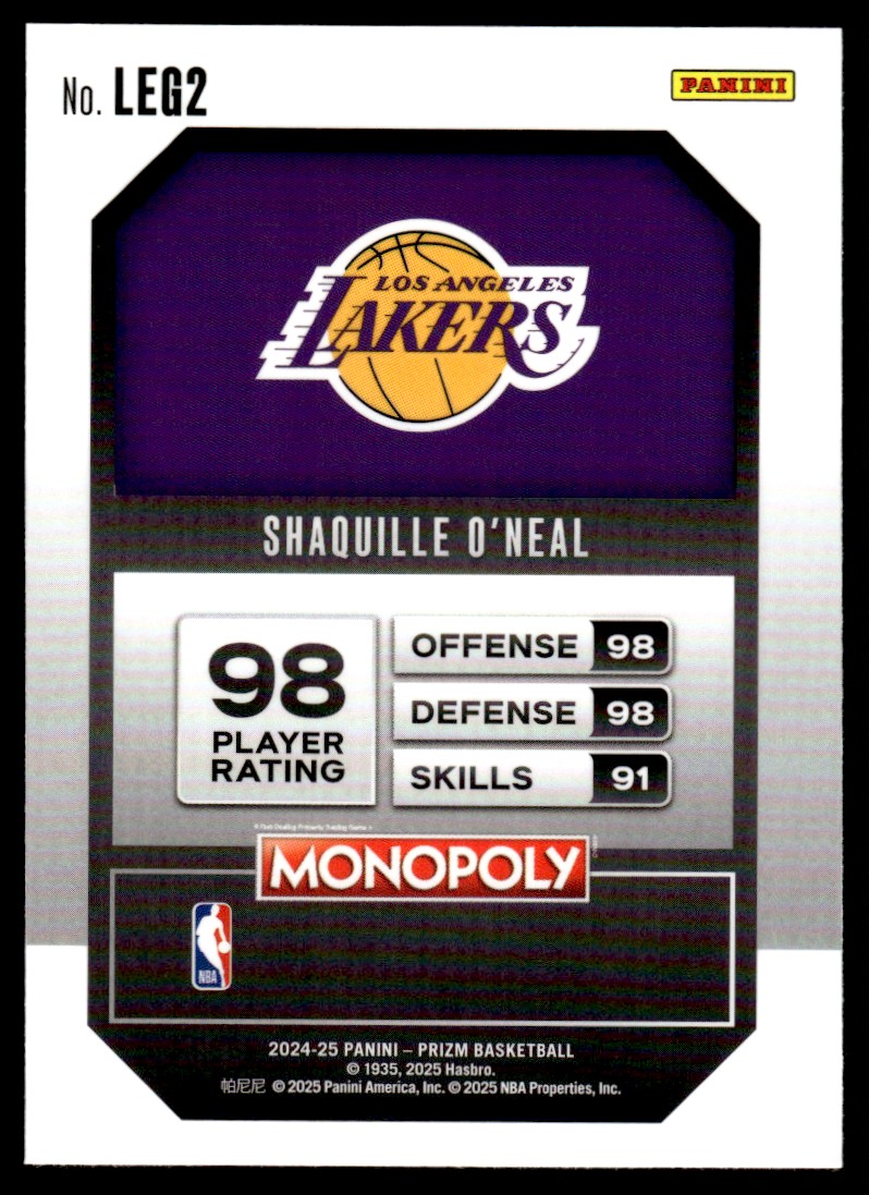 | Shaquille O'Neal Legend #LEG2 2024-25 Prizm Monopoly Basketball NBA Card Los |