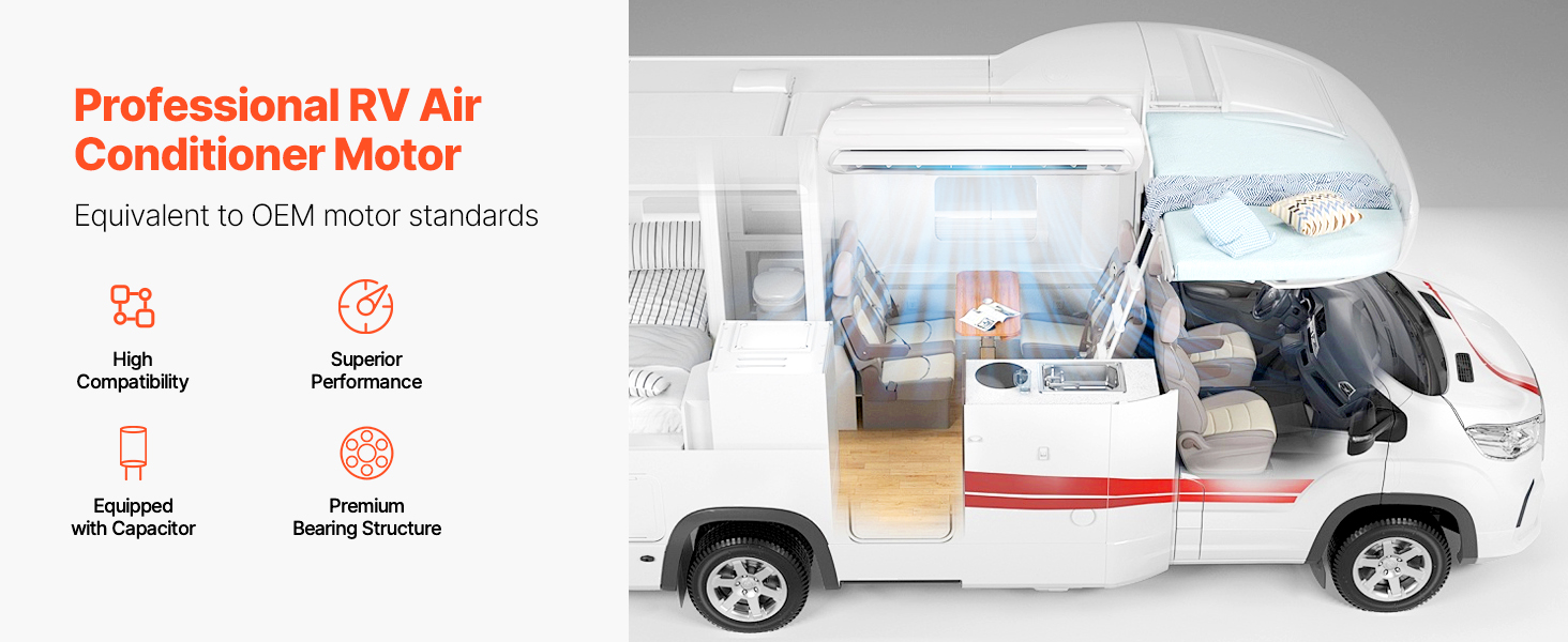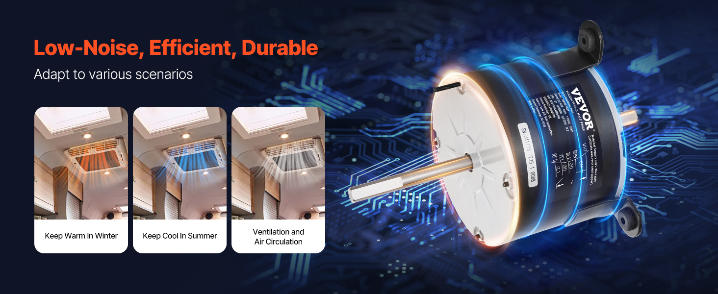 The RV AC fan motor features low noise, high efficiency, and durability. Whether it's keeping warm in winter, keeping cool in summer, or ventilating and circulating air in the RV, it operates efficiently to deliver comfortable temp and fresh airflow.