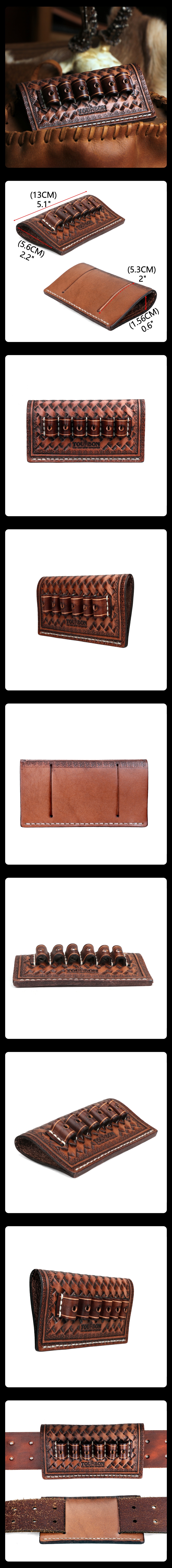TOURBON Gun Holsters compact leather cartridge belt slide. Hand crafted to fit either 44 / 45 caliber or 38 / 357 cartridges. Our compact belt slide is designed to slip over your belt up to 2 inches wide and holds six cartridges.