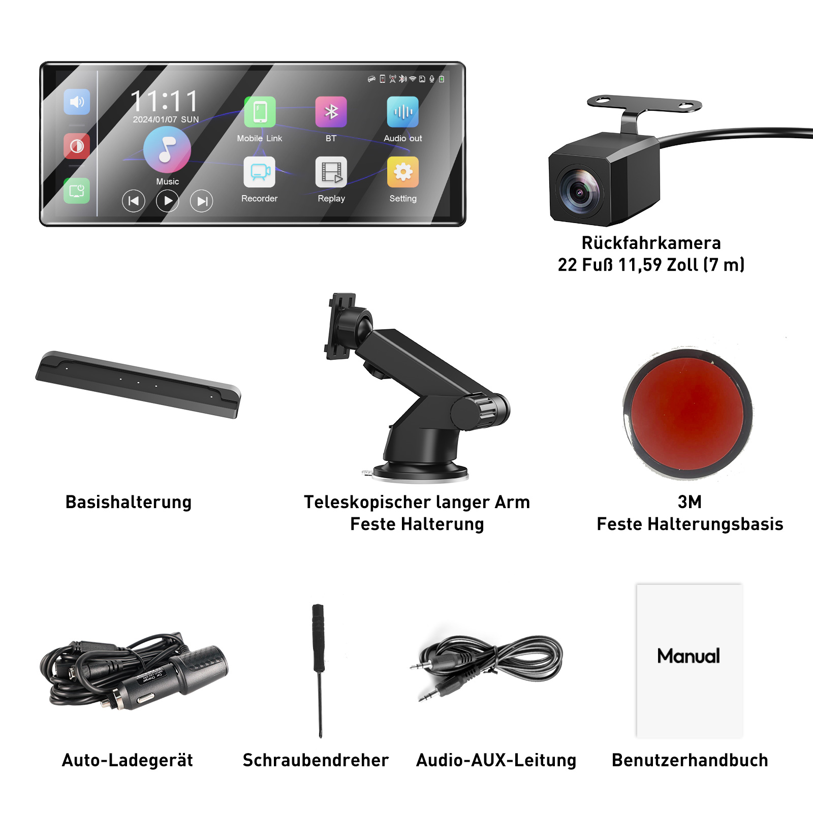 1 x Tragbare Carplay-Dashcam (11,3 Zoll)