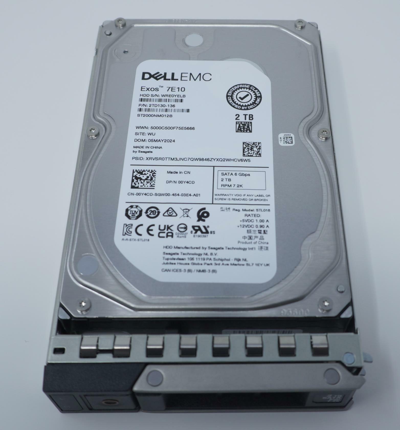 Dell 0Y4CD 00Y4CD 2TB 7200RPM 3.5" SATA 6Gb/s 128MB Cache 512n ST2000NM012B Internal Hard Drive With Gen14 Tray