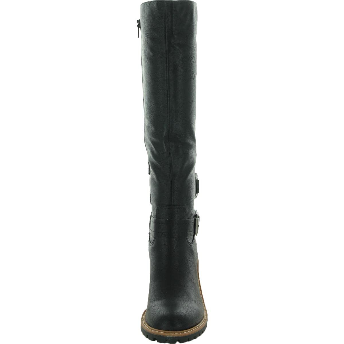 SUN STONE Womens Viviaan Zip up Buckle Knee-High Boots Black 8 Medium (B,M)