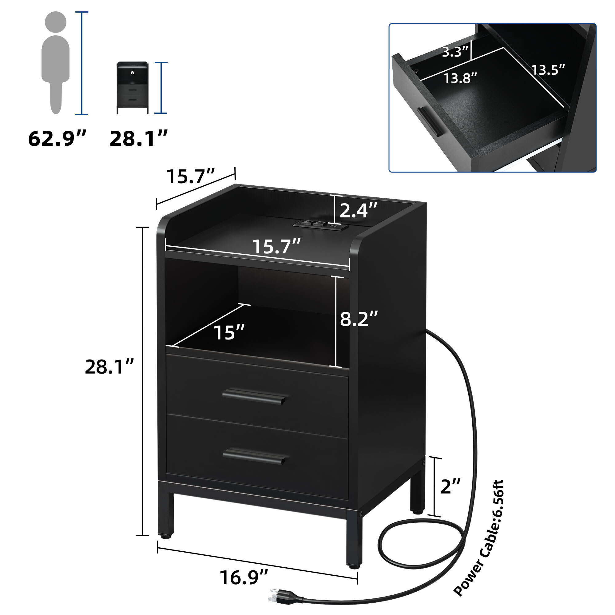 Sturdy and durable: This 2-drawer nightstand combines premium particleboard with a sturdy metal base to ensure durability and stability. The humanized raised edge protects items from falling