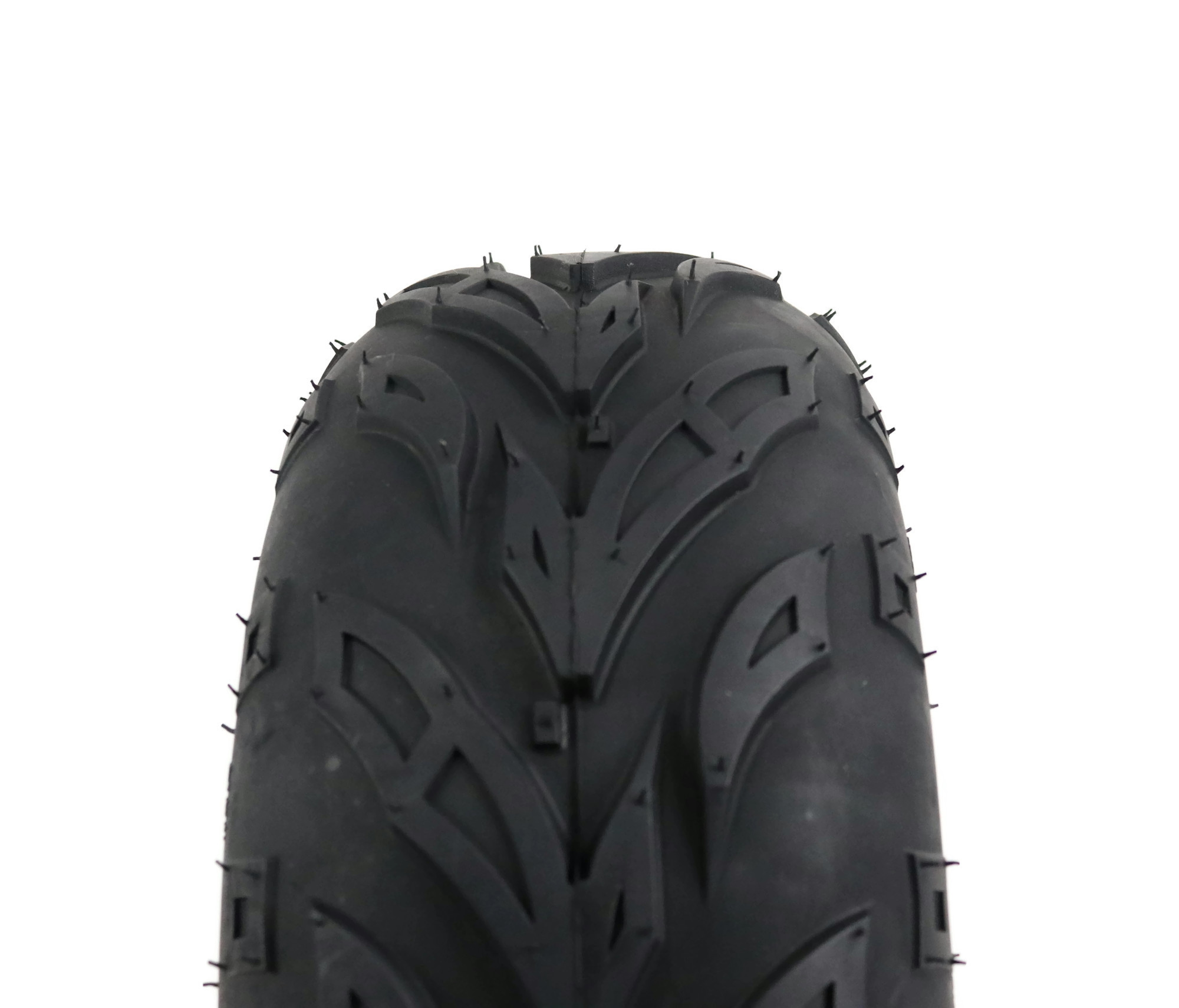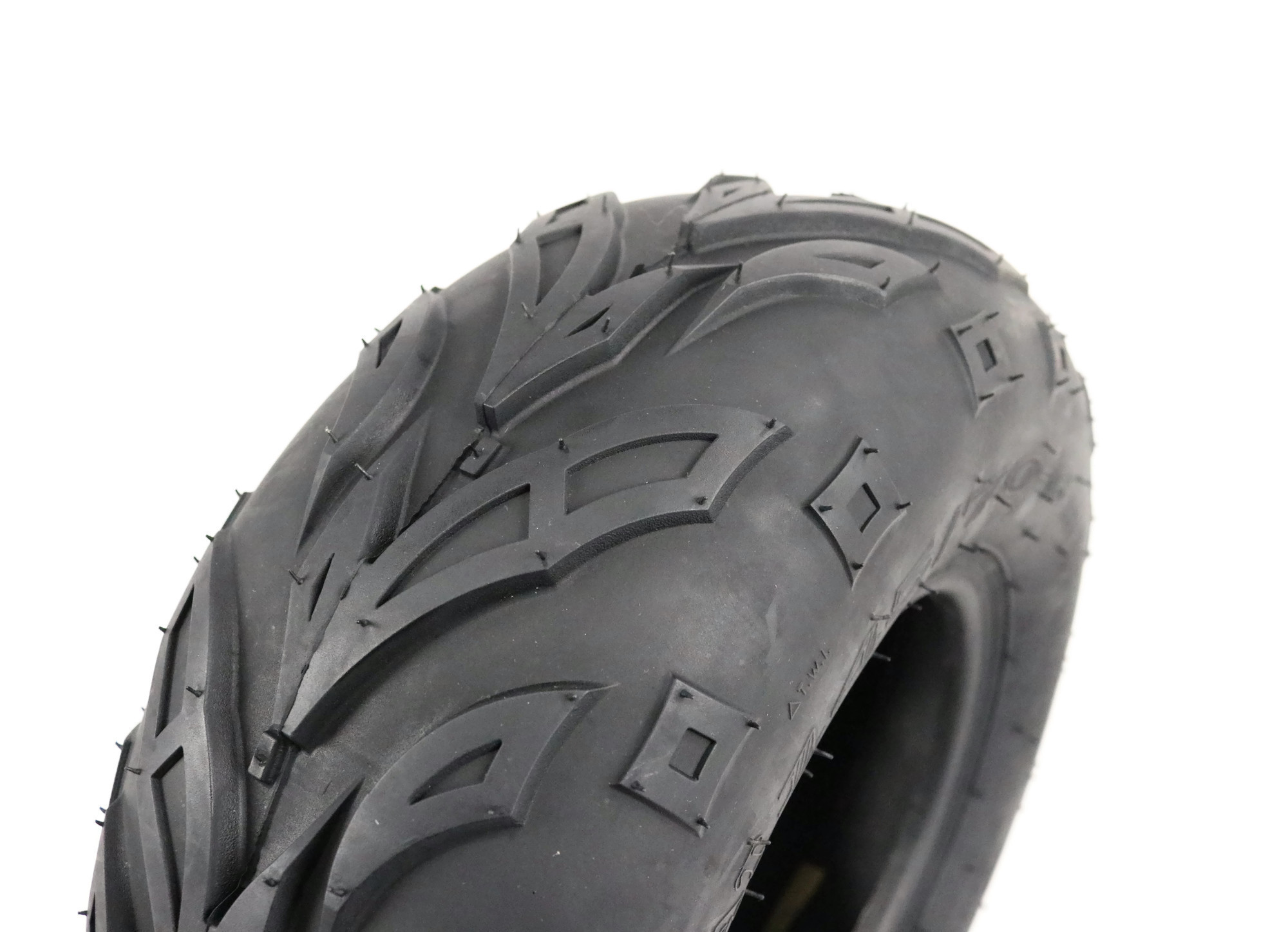 • This tire has widely spaced tread bars shed mud, snow, and sand for consistent traction. The arrow like center tread pattern delivers a smooth ride on hard pack type terrain.