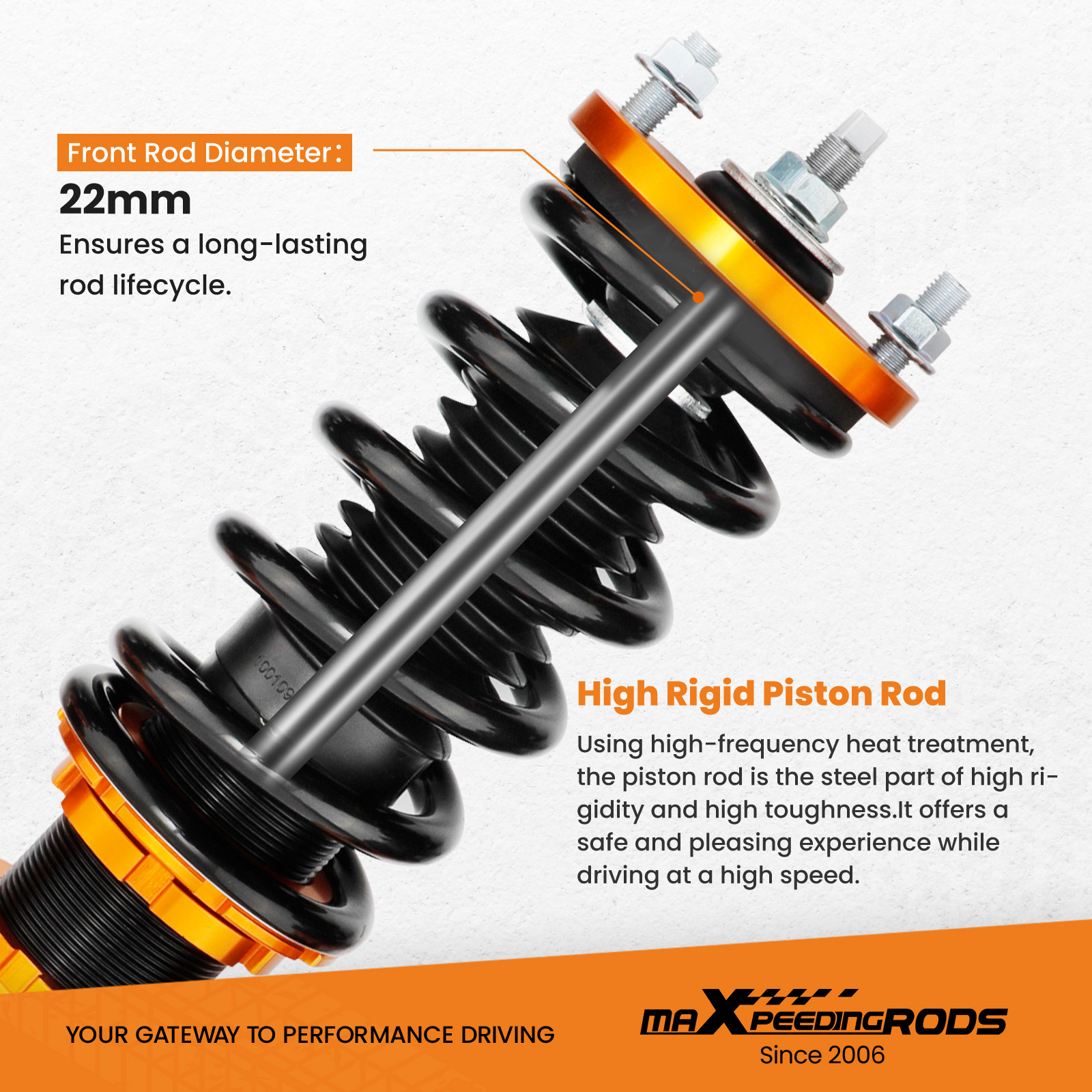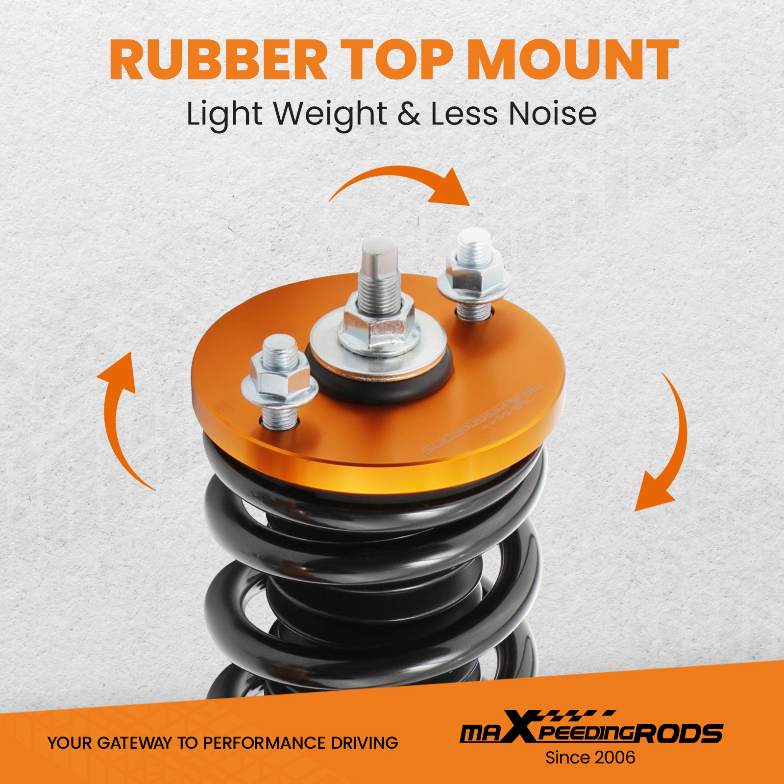 2. Rubber top mounts help to deliver a smooth and forgiving ride for city use at any speed and rubber joints assist in absorbing hard impacts.