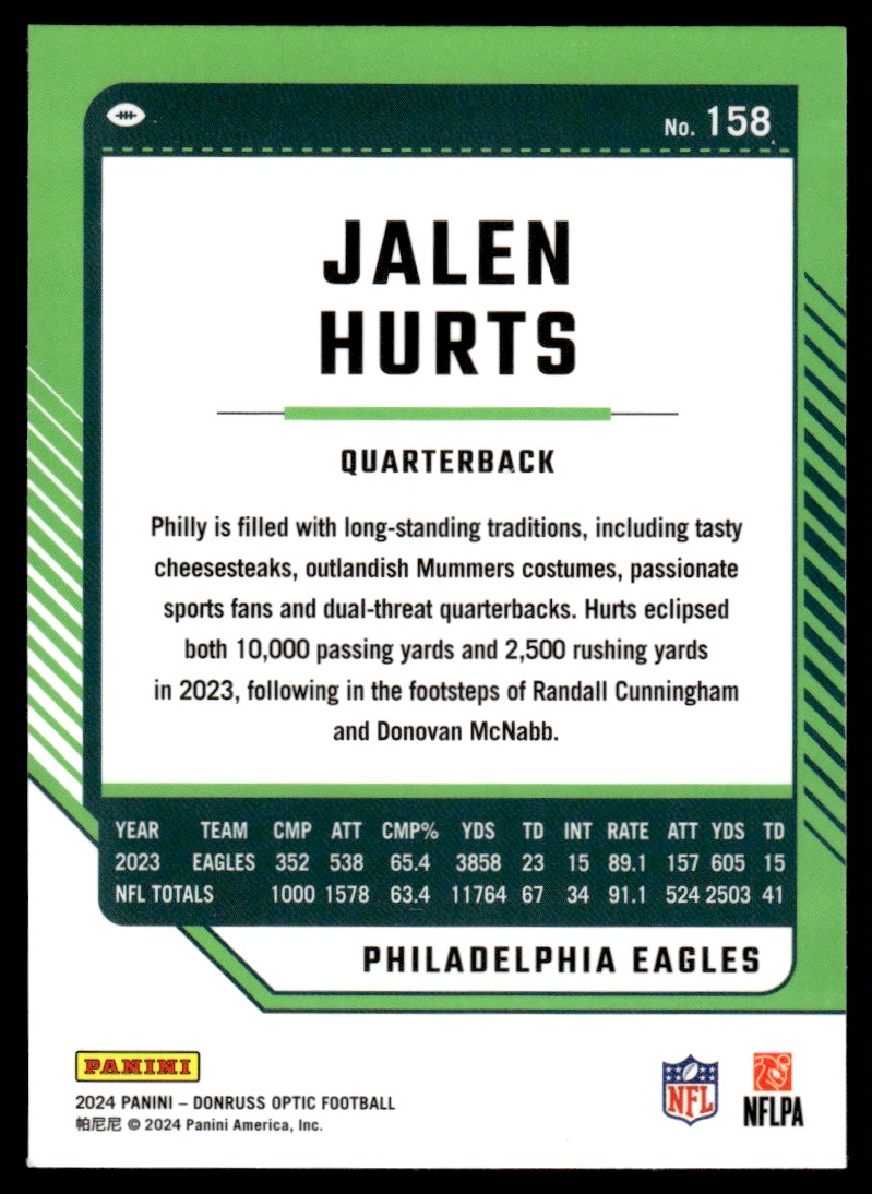 | Jalen Hurts #158 2024 Donruss Optic Football Philadelphia Eagles |