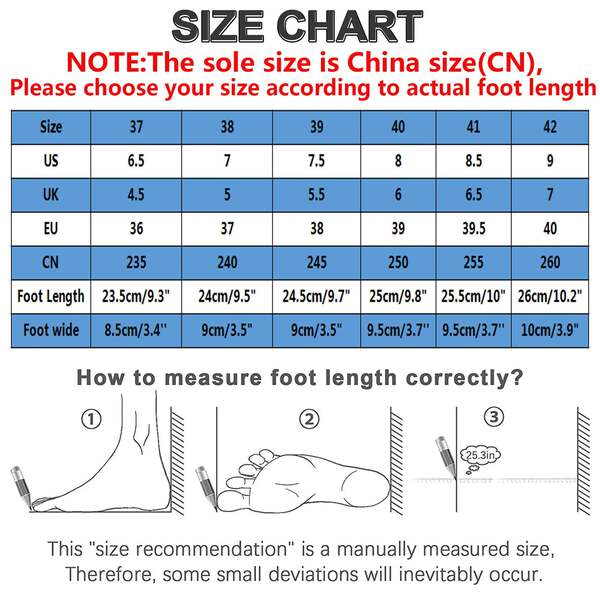 True to Size Fit: Available in US sizes 6.5 to 9; refer to size chart for accurate fit based on foot length.
