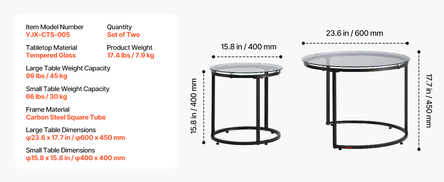 Flexible Combination: This nesting coffee table set includes a large table (φ23.6 x 18.1 in) and a small table (φ15.8 x 14.2 in). The flexible design allows you to mix and match according to personal preference and space requirements. When nested, it saves space in your home. When used independently, it can serve as a coffee table, side table, etc.