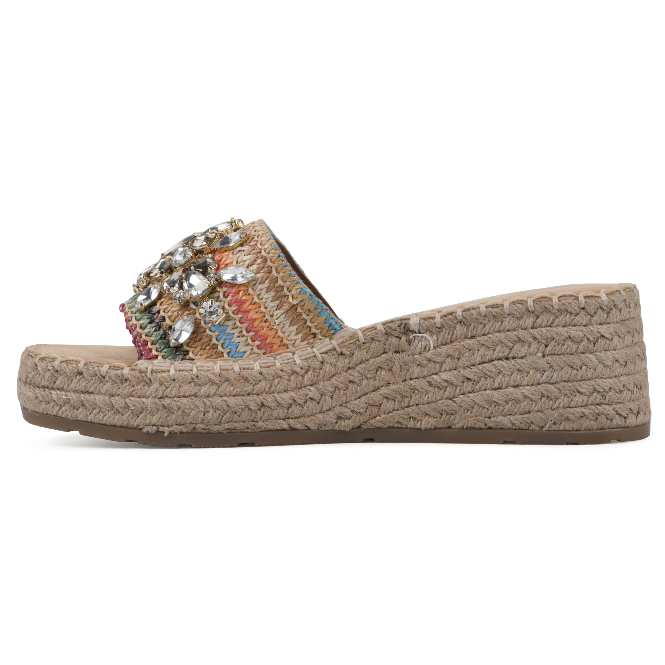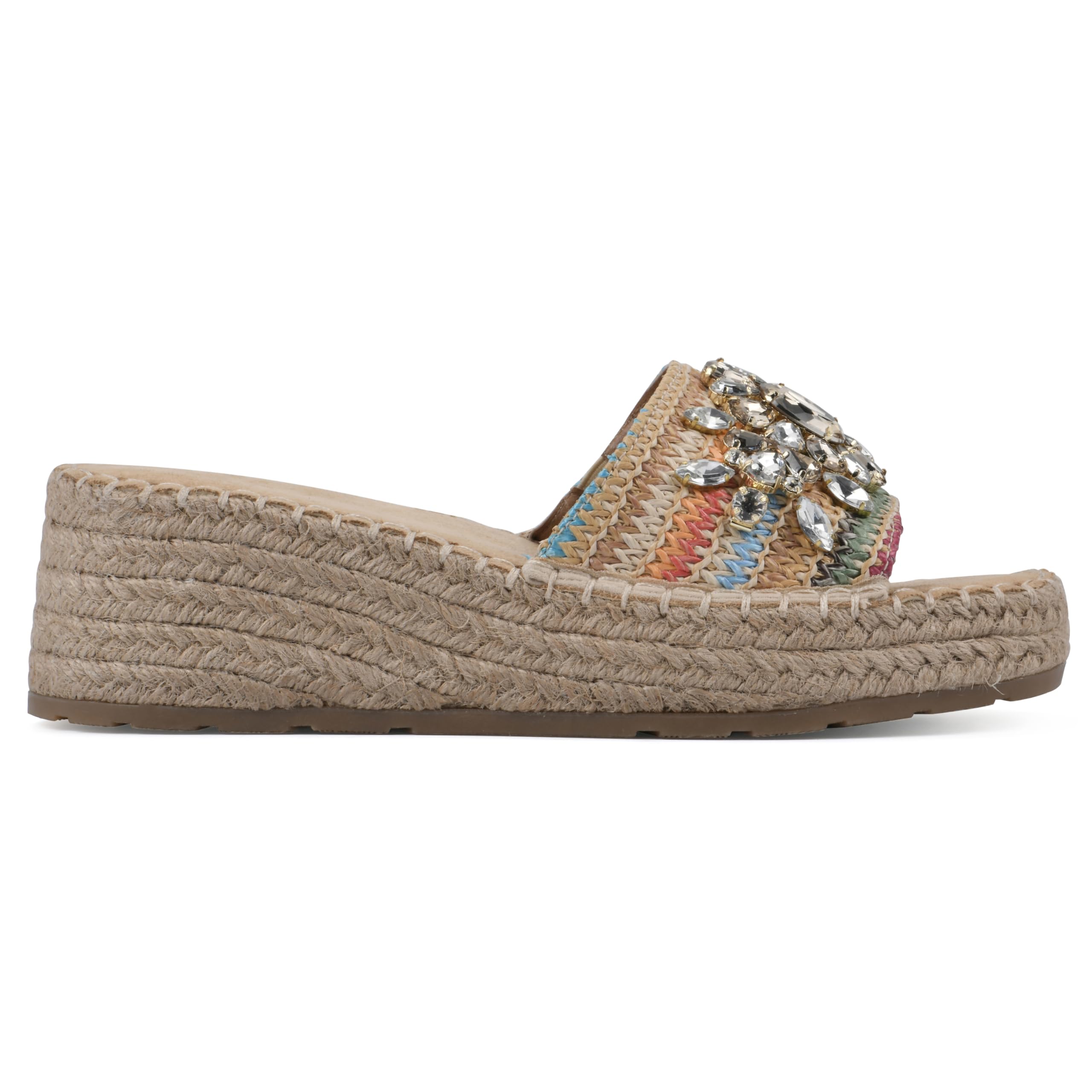 WHITE MOUNTAIN Women's Stitch Low Platform Espadrille Sandal, Natural/Multi, 7 M