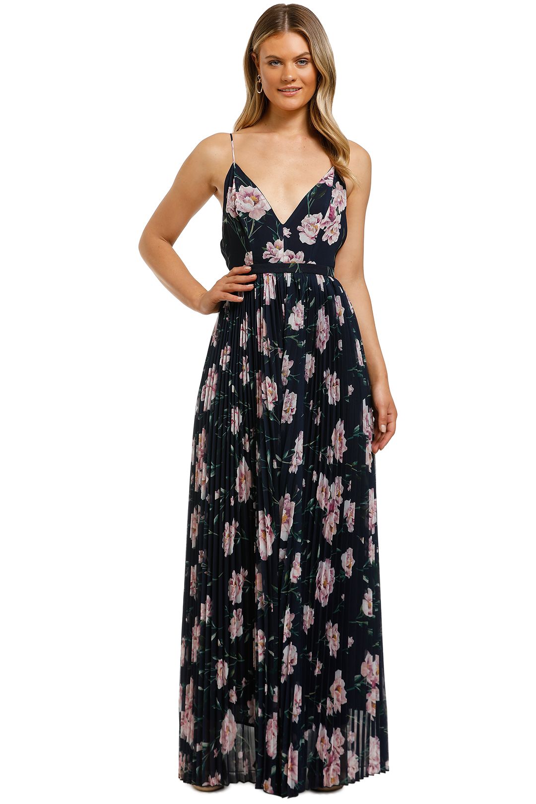 Fun and flirty floral jumpsuit by Keepsake The Label. Featuring pleated fabrication, V plunge neckline and falls into maxi length. The perfect piece to wear for daytime events.