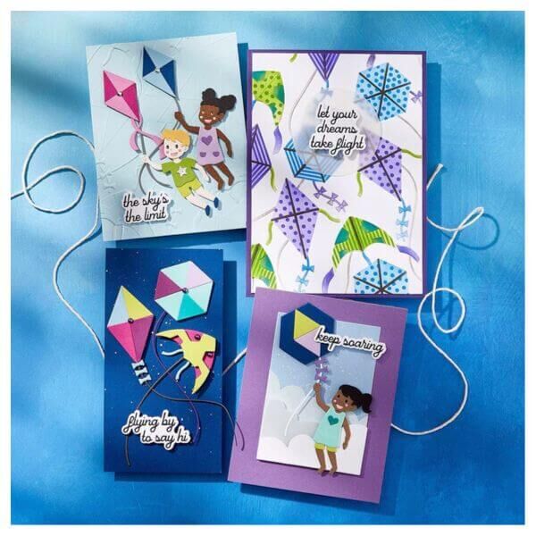 The Skys the Limit Collection soars to new heights with your paper crafting creations. Fun elements of kites, kids and more are made from cutting dies to stenciling to embossing. So let your creativity take flight!