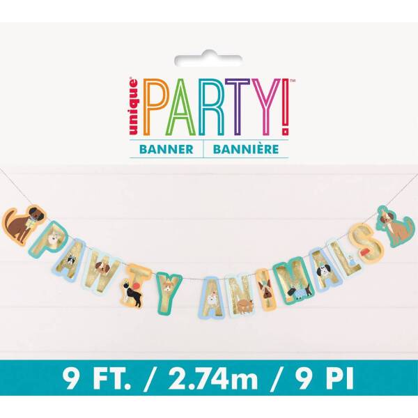 Add tail-wagging fun to your party with our “Pawty Animals” Dog Foil Stamped Letter Banner! Measuring 2.74m long, this festive dog-themed banner features adorable pups and shiny foil-stamped letters that spell out “PAWTY ANIMALS.”
