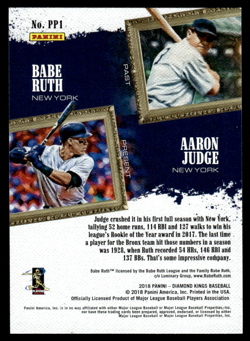 | 2018 Panini Diamond Kings Past and Present Aaron Judge/Babe Ruth New York |
