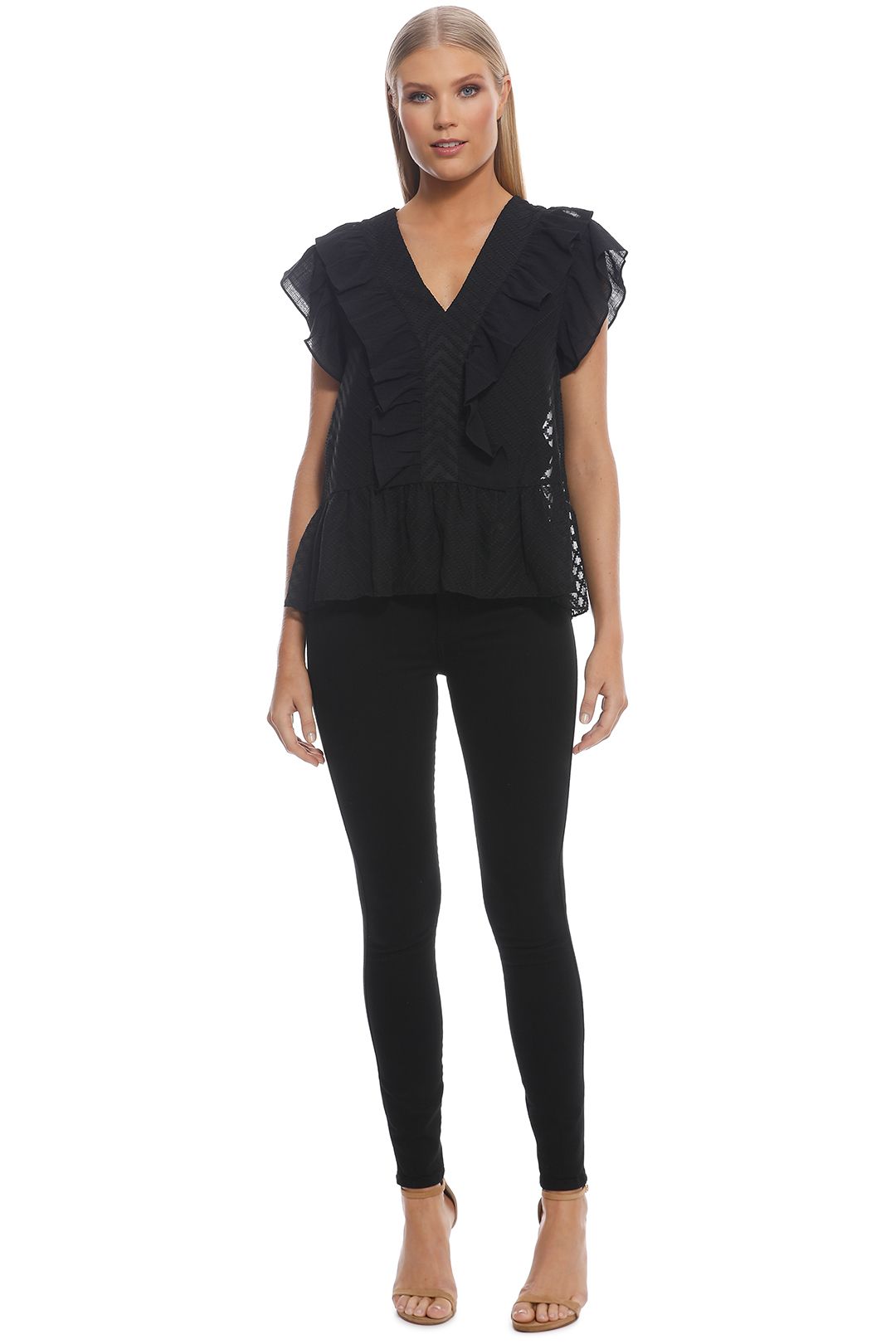 The perfect black ruffle top for an upcoming night out, date night or after work occasion! In lightweight, textured fabric, it features ruffled cap sleeves falling to the bodice into a peplum waist. With a subtle v-neckline for a peek of skin, make this yours now!