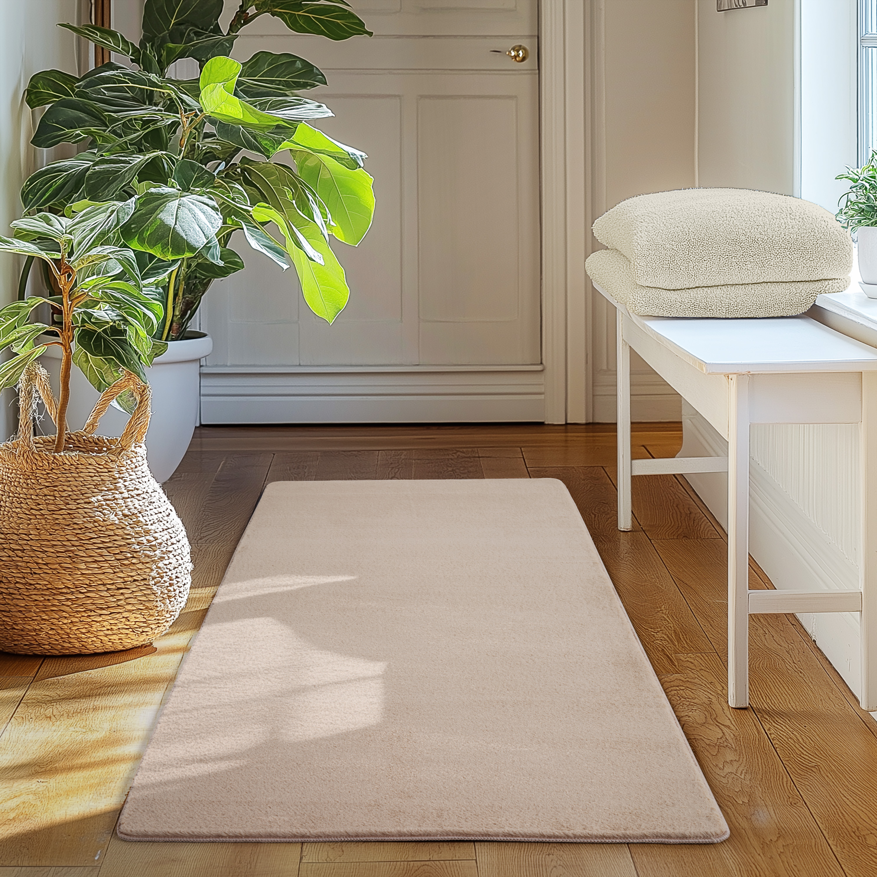 Simpex Einfarbig Teppich Kurzflor ist die ideale Wahl für alle, die einen komfortablen und stilvollen Teppich suchen. Mit seiner superweichen und flauschigen Oberfläche sorgt er für ein angenehmes Laufgefühl und passt perfekt in jedes moderne Zuhause. Der Teppich ist in verschiedenen Formen erhältlich rechteckig, rund und als Läufer und fügt sich harmonisch in jedes Zimmer ein. Dank der Polyester-Oberfläche ist der Teppich besonders pflegeleicht und strapazierfähig. Er lässt sich problemlos bei bis zu 30 Grad in der Waschmaschine reinigen, was ihn besonders praktisch für Haushalte mit Kindern oder Haustieren macht. Der rutschfeste Baumwollrücken sorgt für sicheren Halt auf allen Bodenarten, sodass der Teppich an seinem Platz bleibt und keine Unfälle passieren. Mit seinem modernen, einfarbigen Design passt der Teppich perfekt in verschiedene Räume wie das Wohnzimmer, Schlafzimmer, die Küche oder das Kinderzimmer. Ob als gemütlicher Hingucker vor dem Sofa oder als weiche Spielunterlage im Kinderzimmer dieser Teppich bietet nicht nur Komfort, sondern auch eine stilvolle Ergänzung Ihrer Einrichtung. Der Teppich ist zudem mit dem Oeko-Tex Standard 100 Zertifikat ausgezeichnet, was bedeutet, dass er frei von schädlichen Substanzen ist und höchsten Umwelt- und Gesundheitsstandards entspricht. Er eignet sich daher auch für empfindliche Haut und Allergiker.
