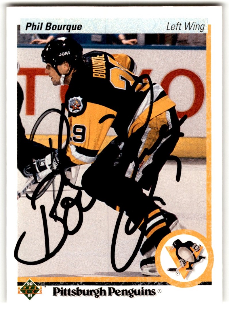 | Phil Bourque 1990-91 Upper Deck Auto #31 IN PERSON Pittsburgh Penguins |