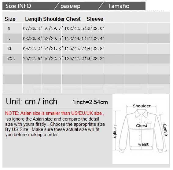 2. The label size is Asian size, the parameters of each size are measured by placing the product on a flat table to measure its outer size. Please measure yourself before ordering, if you are not sure, please contact us.