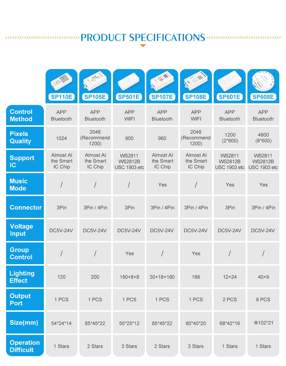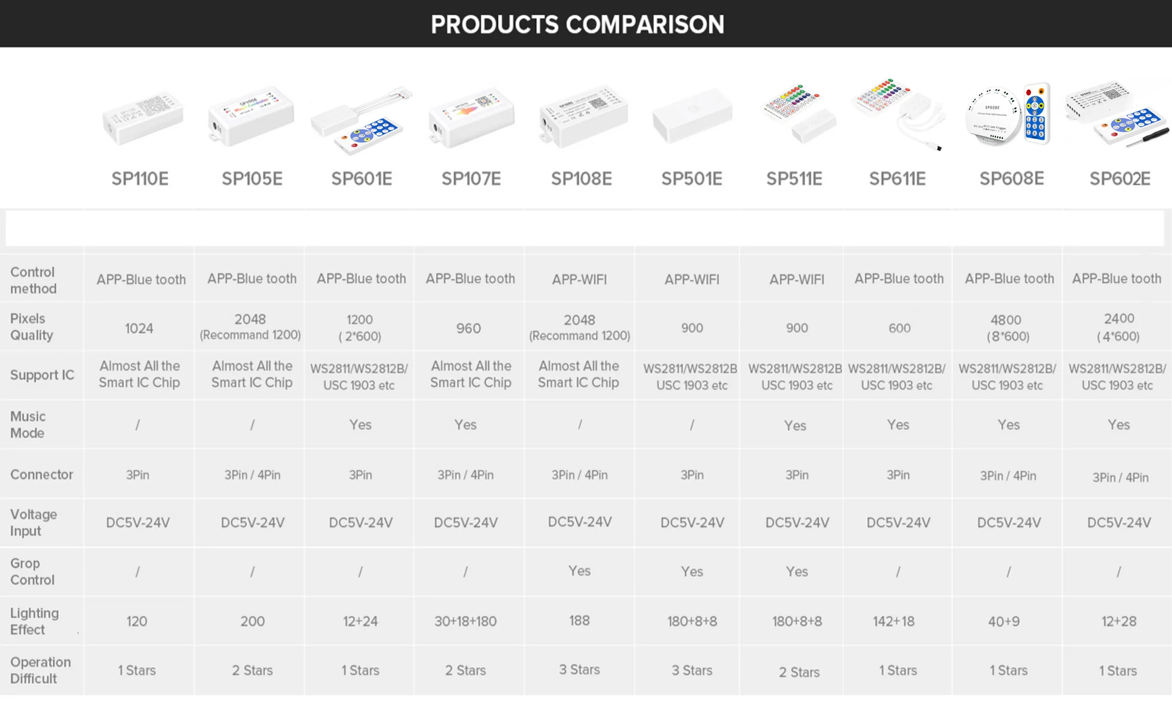 1. SP series products are famous brand products, the company uses high quality components, so the controller compatibility, fluency is very good. Many of LED strips are of mediocre quality(Low quality IC is used), If you buy an unbranded controller, it may not be compatible with your LED strip.