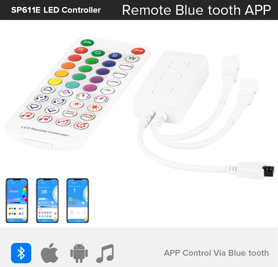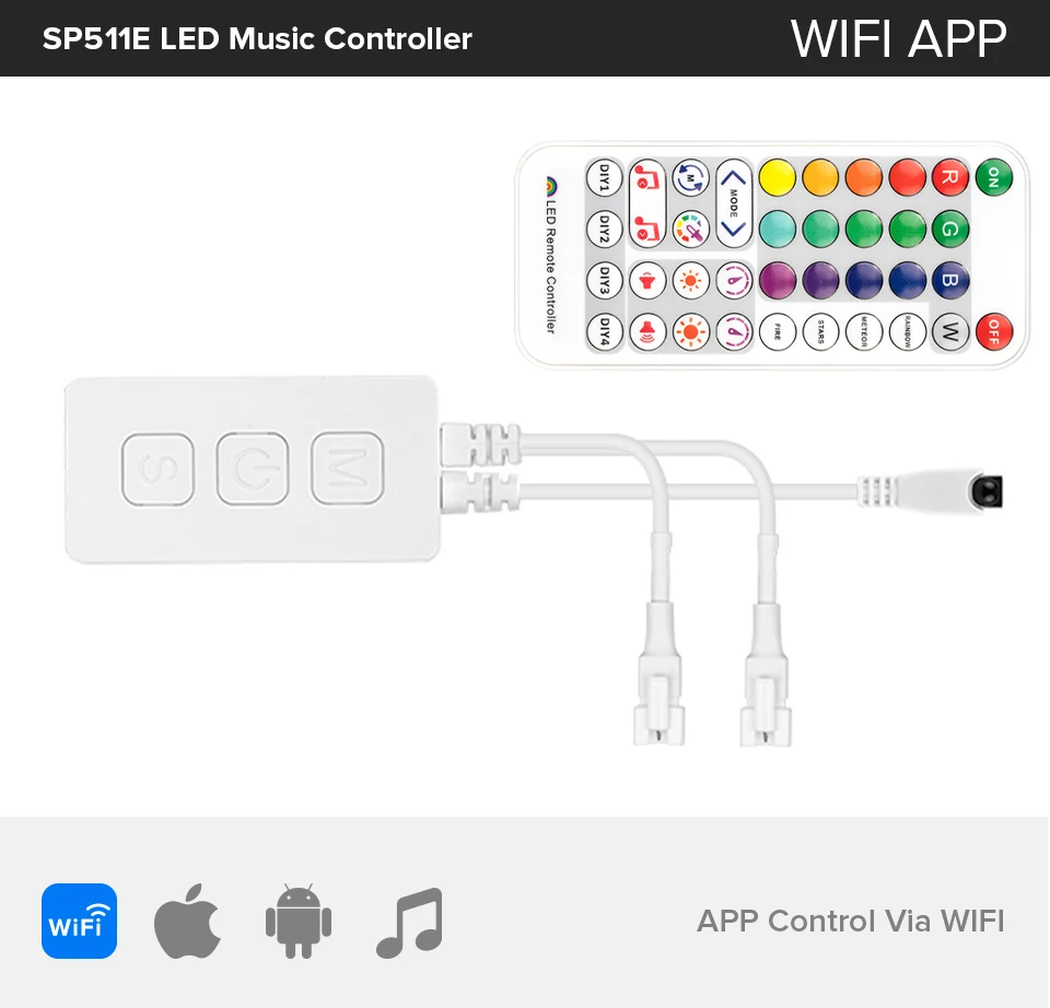 WS2812B LED Controller Wifi Bluetooth Pixel IC SPI Music APP for WS2811 WS2815 WS2813 SK6812 SK9822 RGBW APA102 LED Lights Strip