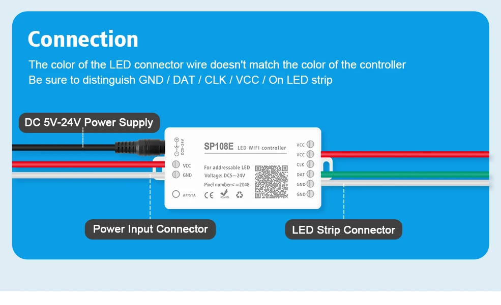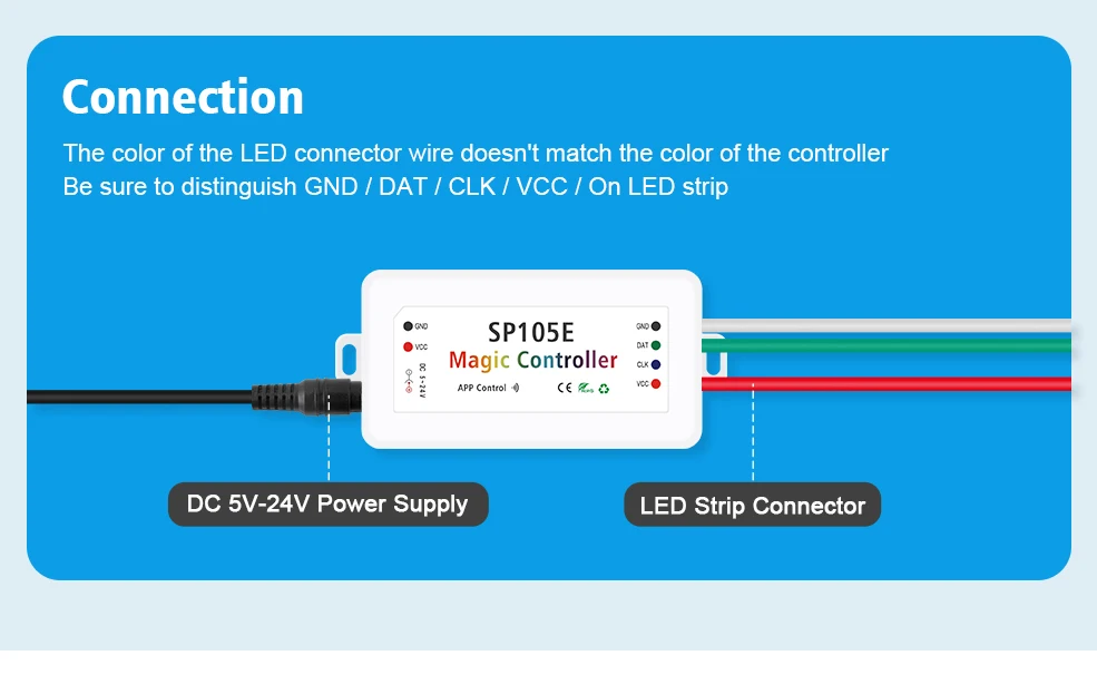 4.If your magic color LED strip is 4 wires connector, Please choose SP105E SP107E SP108E, they are 4 Pin connectors.