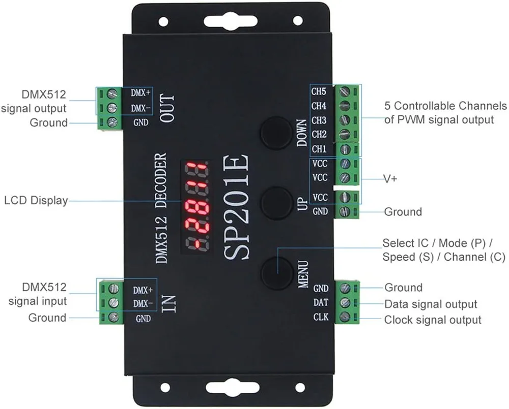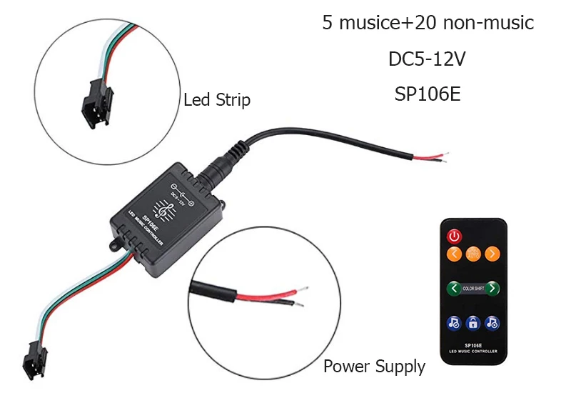 connector Input Voltage: DC5-24V Pixel: 600*8 Music activated mode: Built-in