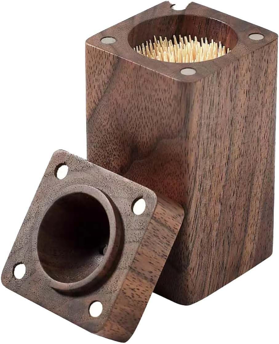 - Practicality: The toothpick box adopts a strong magnetic adsorption form on the top and bottom, making the toothpick easy to use while keeping it neat and orderly, dustproof and moisture-proof. The bottom is equipped with anti slip pads to prevent slipping and damage to the solid wood tabletop.