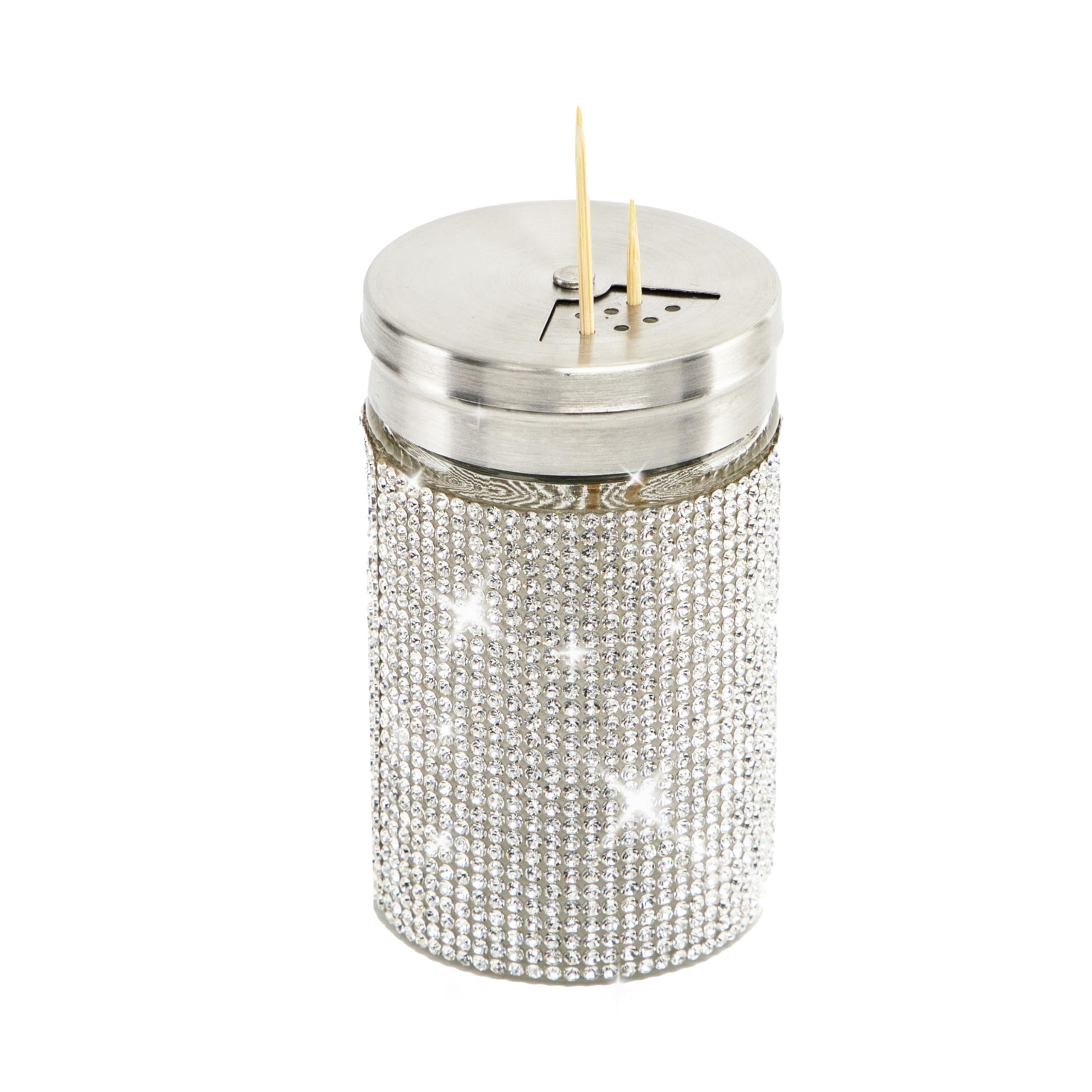 Bling Toothpick Holder Rhinestone Home Decor Silver Glitter Sparly Bling Purse Pill Bottle Multiple Uses for Home and Kitchen Decor
