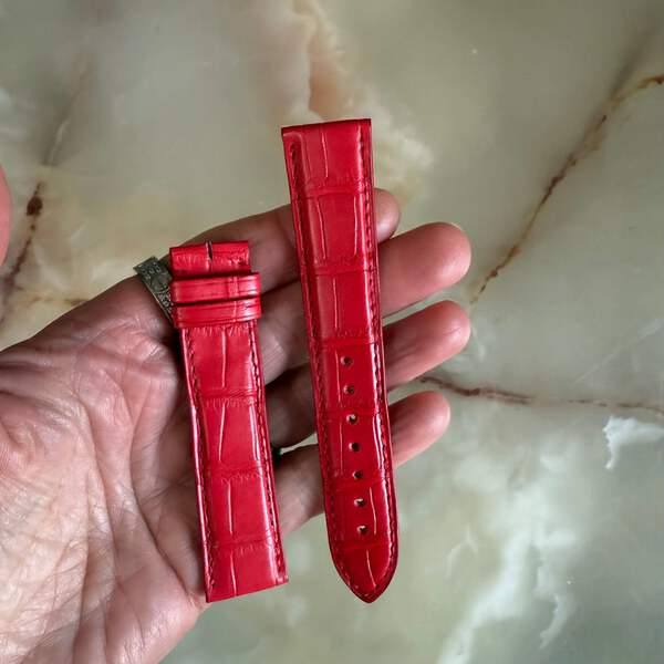 NOS Authentic Cartier Red Alligator Watch Strap Band 20mm X 18mm SM 115mm - 85mm KD18BL66-S06
