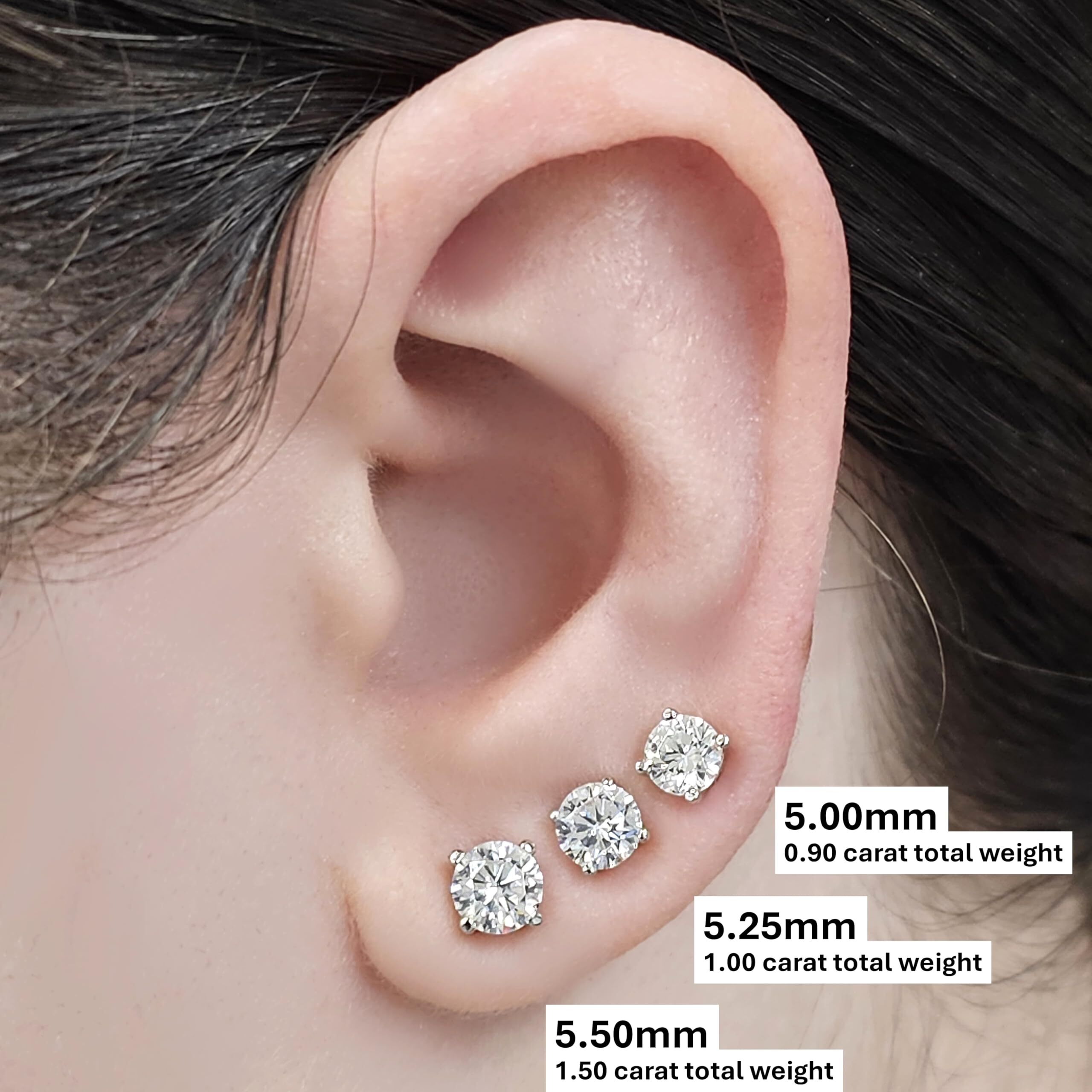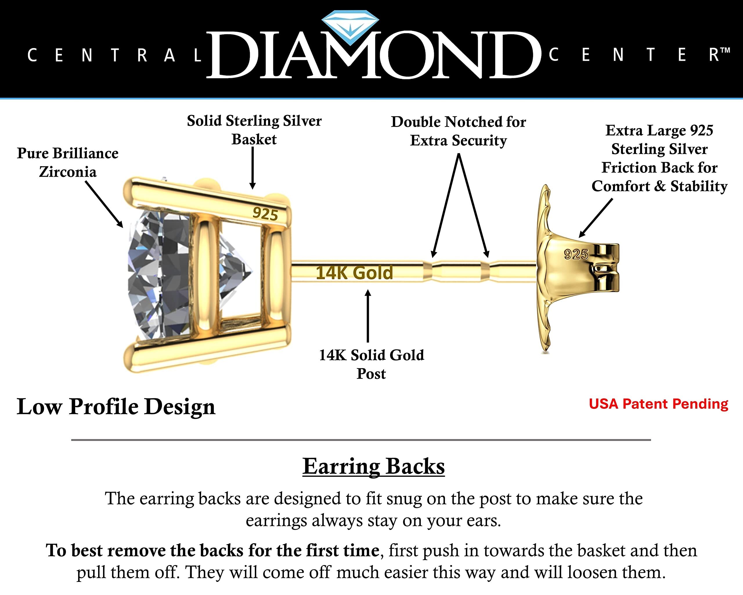 Central Diamond Center 14K Solid Gold Post & Sterling Silver 4 Prong CZ Stud Earrings - Yellow Gold Plated - 5.50mm - 1.50cttw