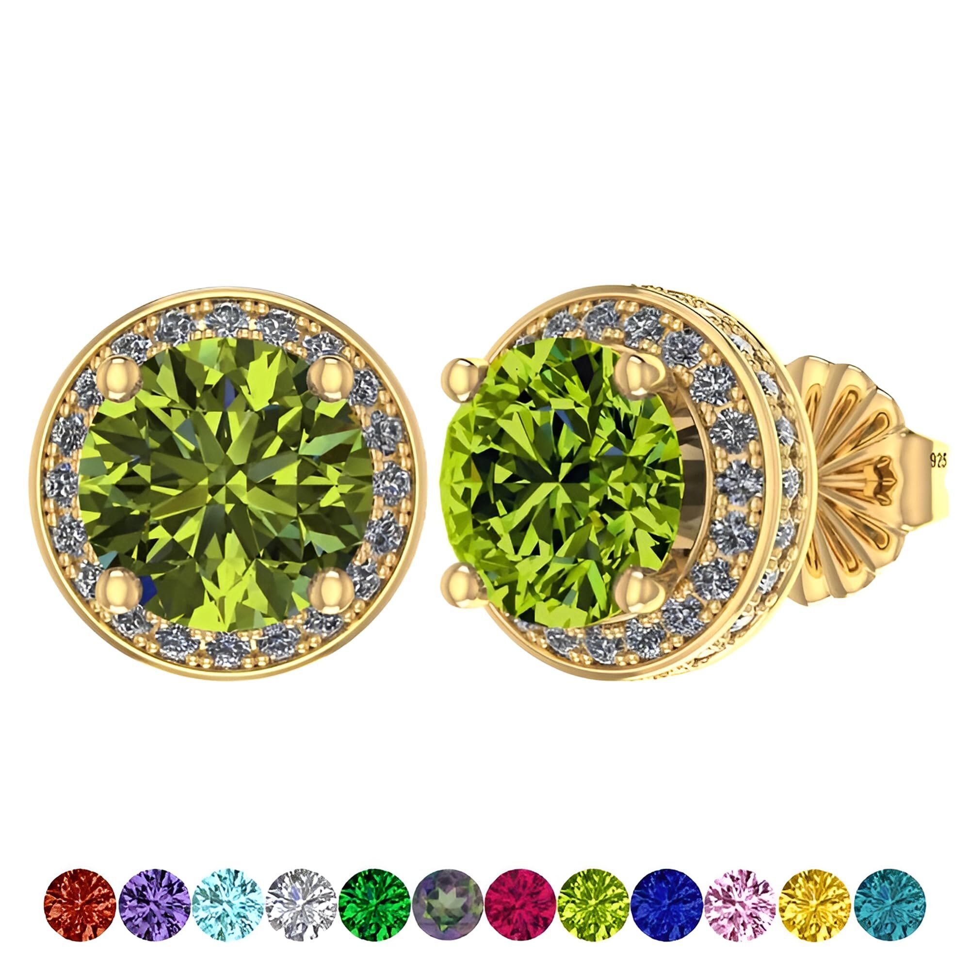 Central Diamond Center Round Halo Birthstone Stud Earrings Sterling Silver, August - Simulated Peridot (Yellow) 6.5mm