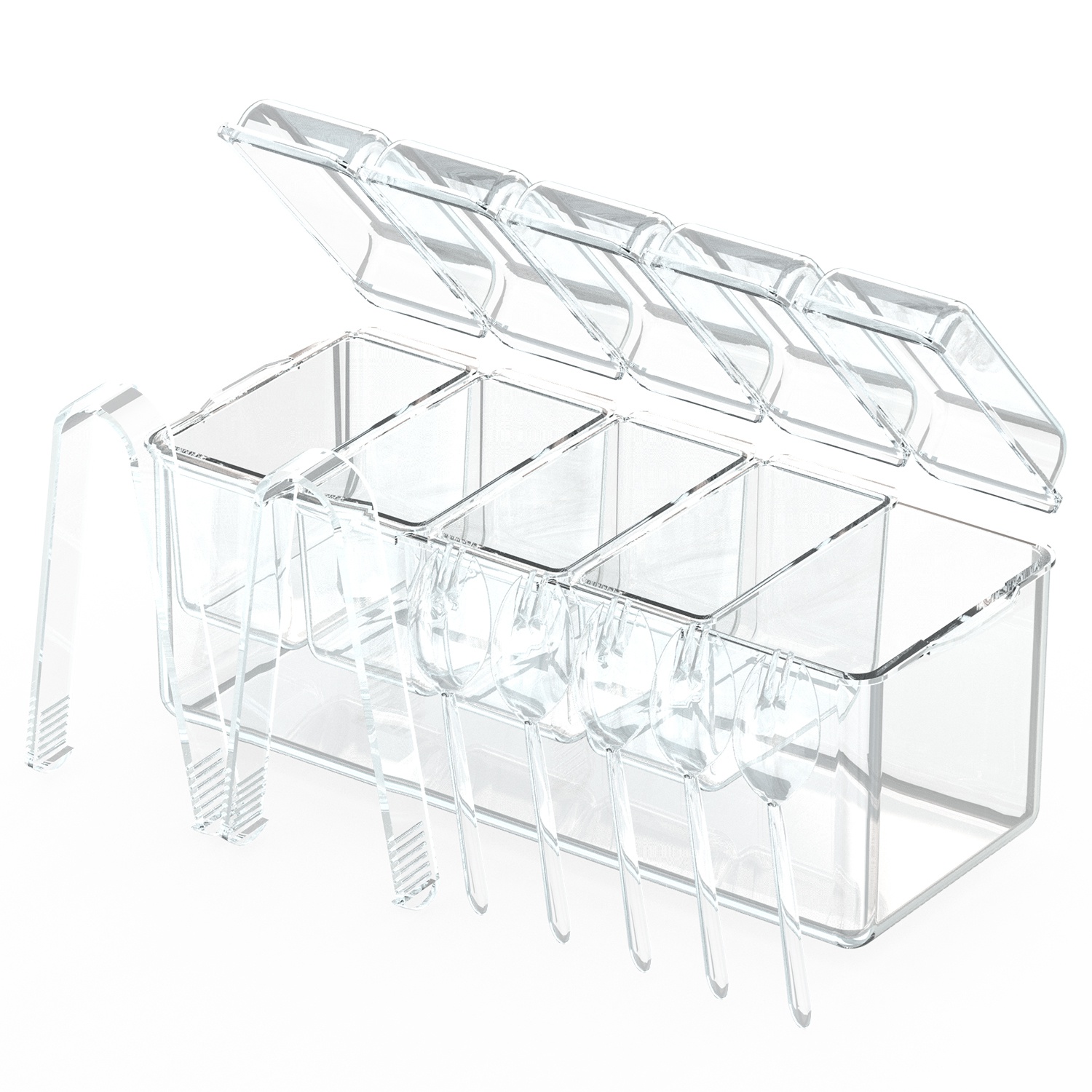 Detachable Trays To Keep Fresh:The PET box coming with 5 individual trays with lids,is able to hold different foods,great to put some fruits,vegetable dips,salsa,cold cuts,ice cream toppings,relishes,shrimp and appetizers. Each tray holds up to 16.9 ounces. Note:Please don’t leave acidic fruits in the Condiment Server for more than 4 hours.