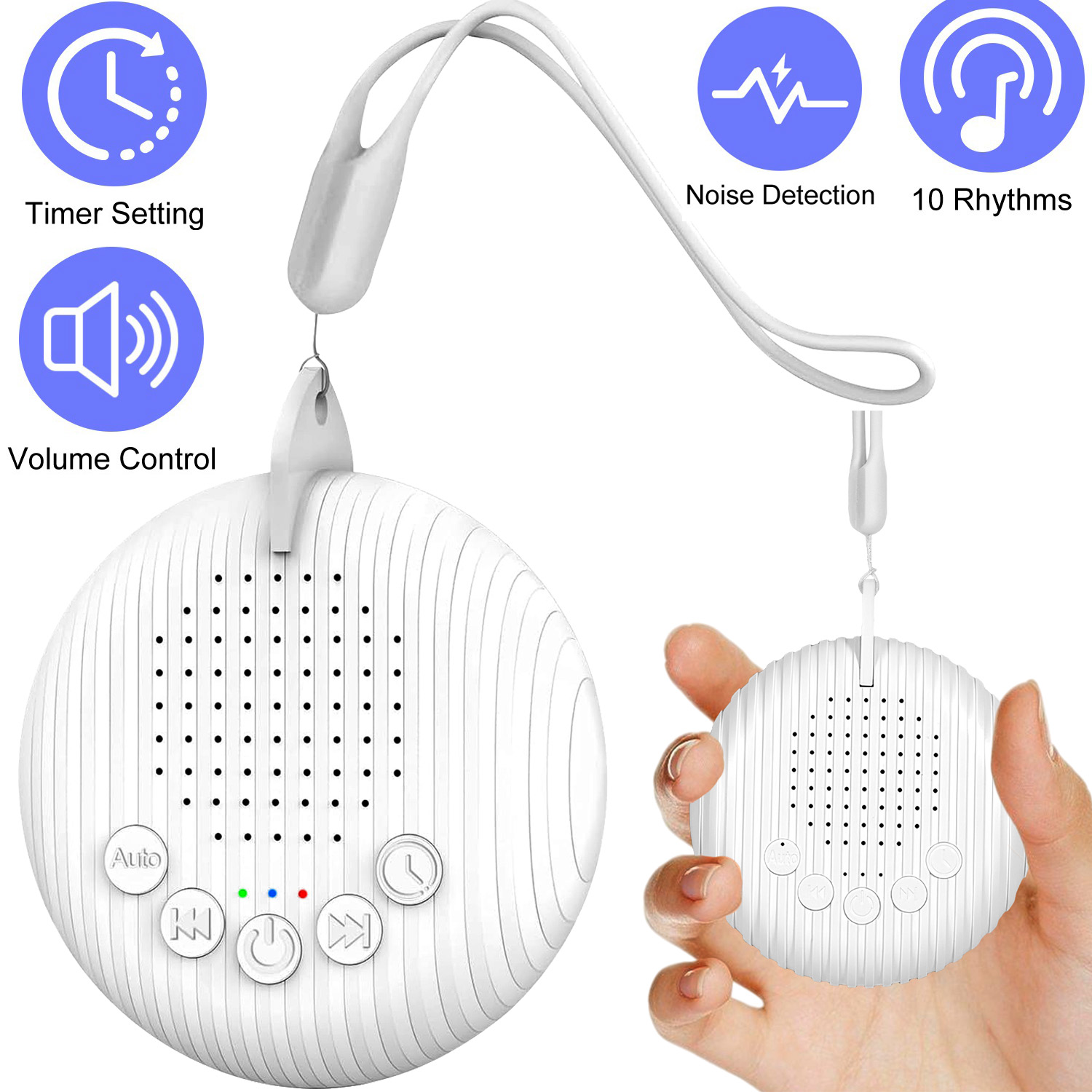 Say goodbye to unwanted noise disruptions and hello to deep relaxation and focus. Come with 10 soothing rhythms and stepless volume adjustment, our portable white noise sound machine allows for personalization experience, ensuring your comfort and peace of mind. Auto noise detection function detects for noise lasting over 10 seconds and automatically activates the white noise sound to counter them. Additionally, 3 timer settings and memory function provides you more convenience during using. Whether it's for your baby's tranquility, your own peaceful rest, or enhanced focus during activities like yoga, this compact white noise machine is your perfect companion.
