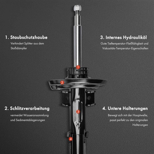 | Stoßdämpfer-Befestigungsart | oben Stift, unten Schelle |