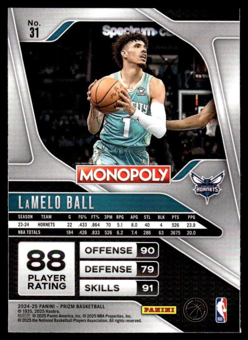 | LaMelo Ball NBA Card #31 2024-25 Panini Prizm Monopoly Charlotte Hornets |