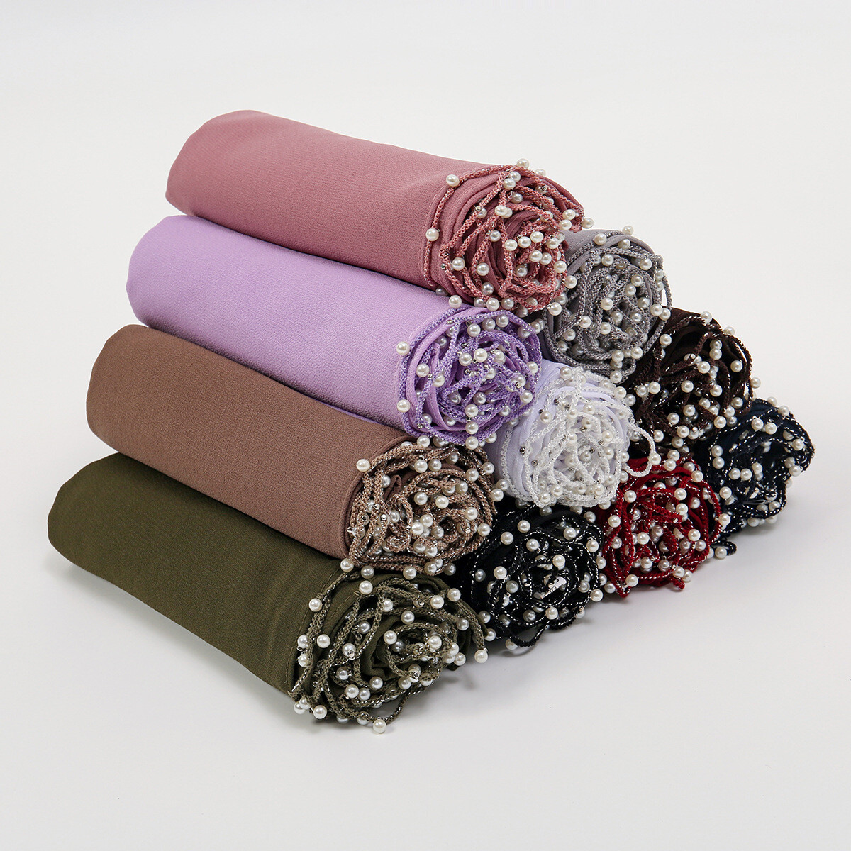 Women Chiffon Beads Scarf Shawl Wrap Plain Long Wide Beach Headscarf Scarves