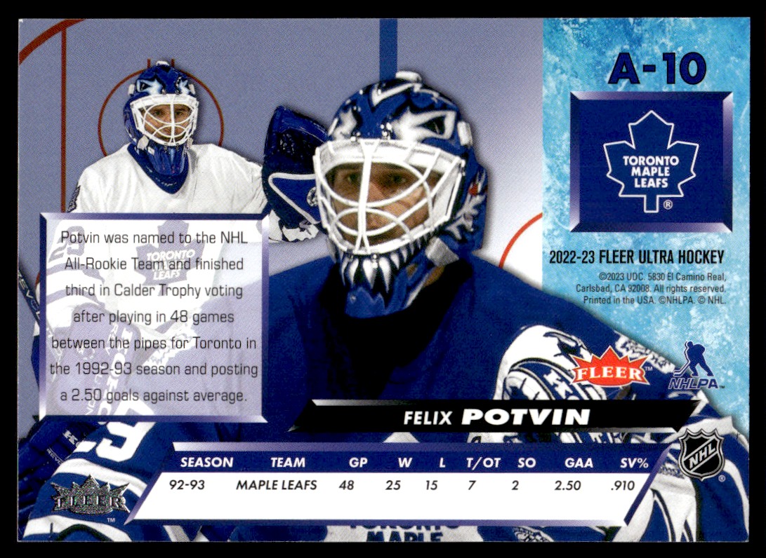 | Felix Potvin Retro #A-10 2022-23 Fleer Ultra Hockey Toronto Maple Leafs |