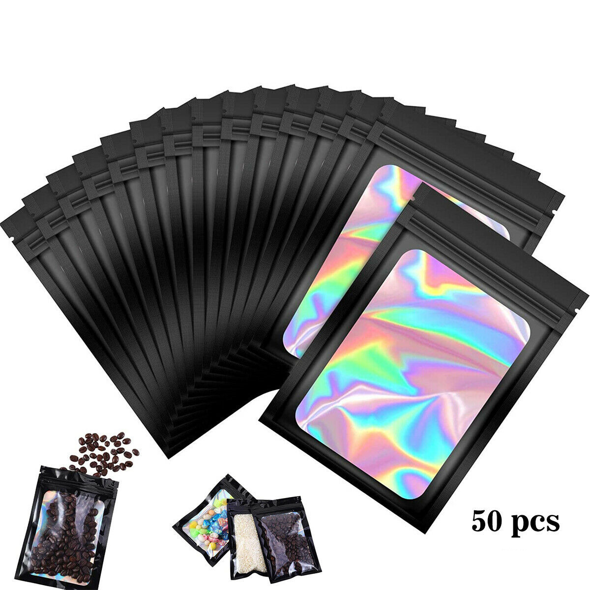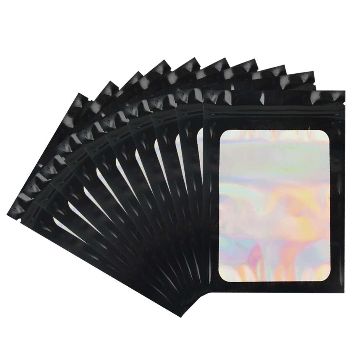 【HOLOGRAPHIC RAINBOW COLOR】- Our foil ziplock bags come with holographic rainbow color in the back and transparent in the front in order to display the product clearly. When displayed indoors, you don't need to have lots of lighting to see the beautiful rainbow color.