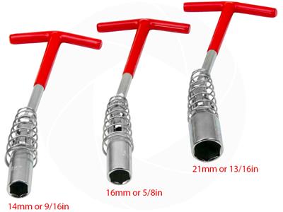 - 16mm (5/8in) T handle flexible spark plug socket wrench