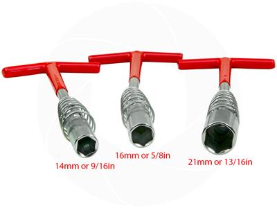 - Socket sizes: 14mm (9/16in), 16mm (5/8in) and 21mm (13/16in)