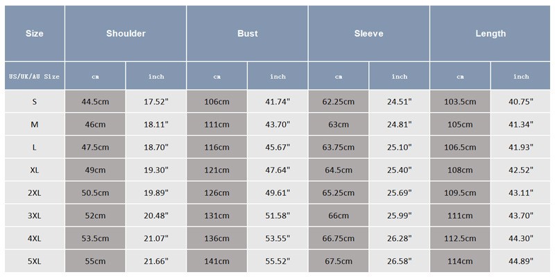 Size Chart: 1inch=2.54cm