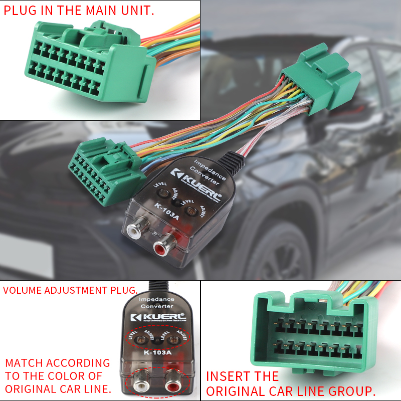 • Audio volume to the amplifier can be adjusted by the dials on the harness. For easier access we recommend using an external volume knob.(Not included)